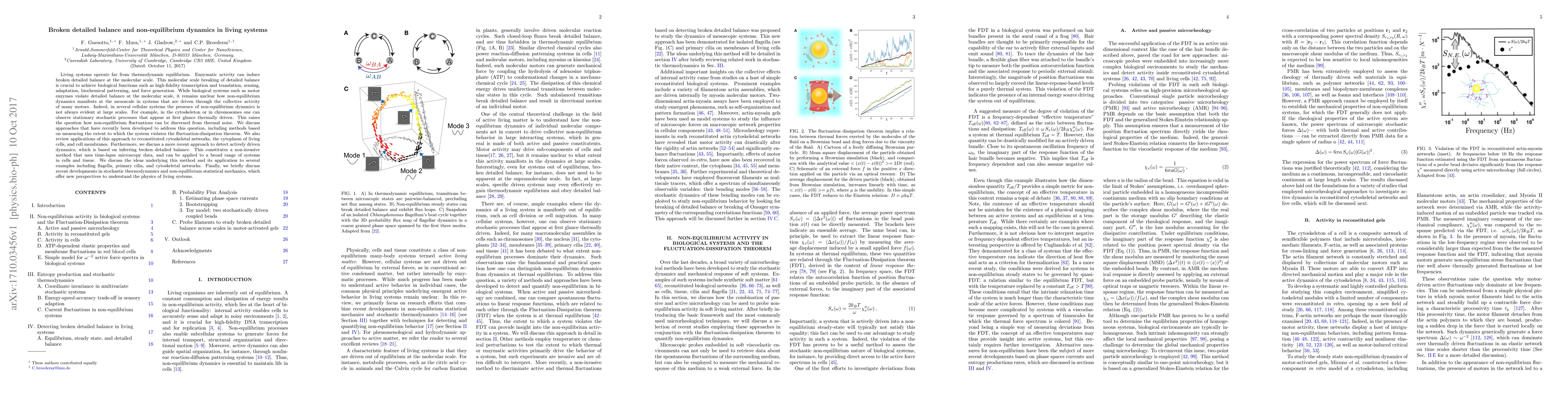 Living systems maintain non-equilibrium dynamics through broken detailed balance at the molecular level, crucial for biological functions. Recent methods, including those based on the fluctuation-dissipation theorem and time-lapse microscopy, help discern non-equilibrium fluctuations from thermal noise in cellular systems.