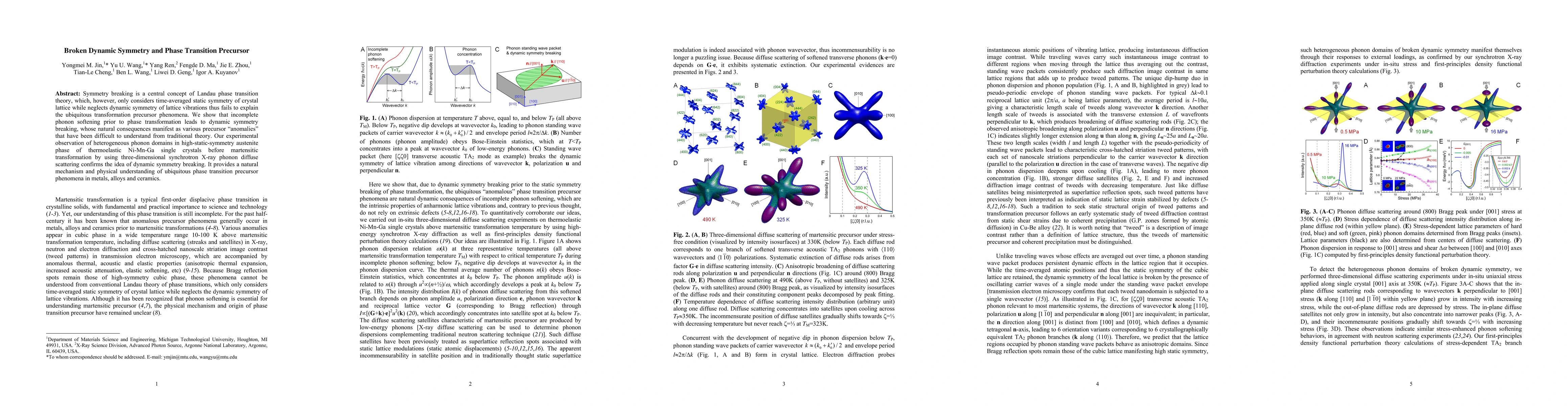 This paper demonstrates that dynamic symmetry breaking due to incomplete phonon softening precedes phase transformations in materials, offering a new understanding of precursor phenomena. Experimental evidence using synchrotron X-ray phonon diffuse scattering in Ni-Mn-Ga single crystals supports the theory of dynamic symmetry breaking as a precursor to martensitic transformation.