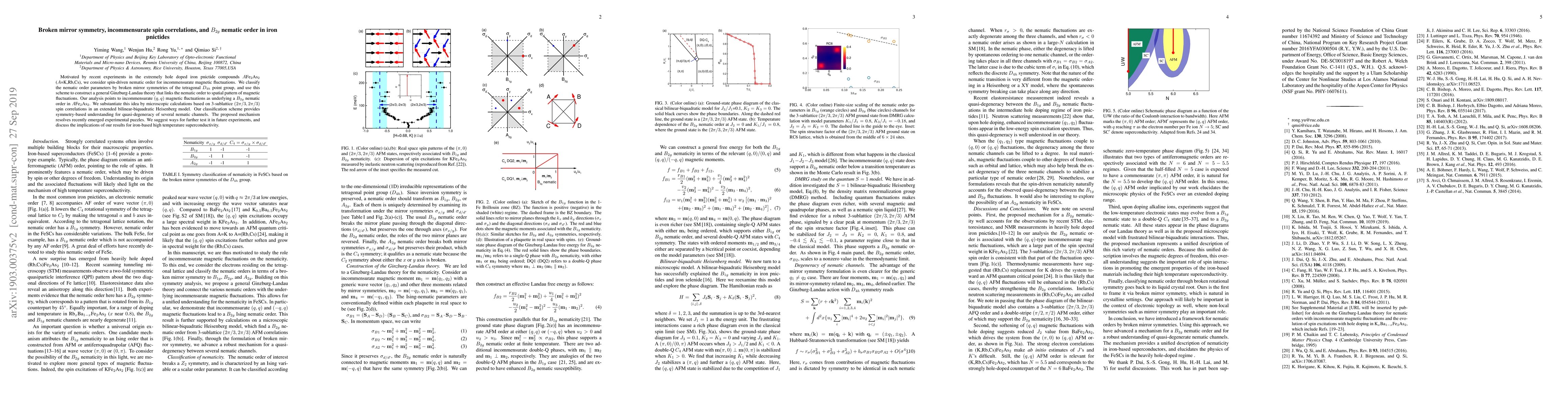 Research finds that incommensurate spin correlations can lead to a distinct form of nematic order in iron pnictide compounds, characterized by broken mirror symmetry and $B_{2g}$ nematic order.