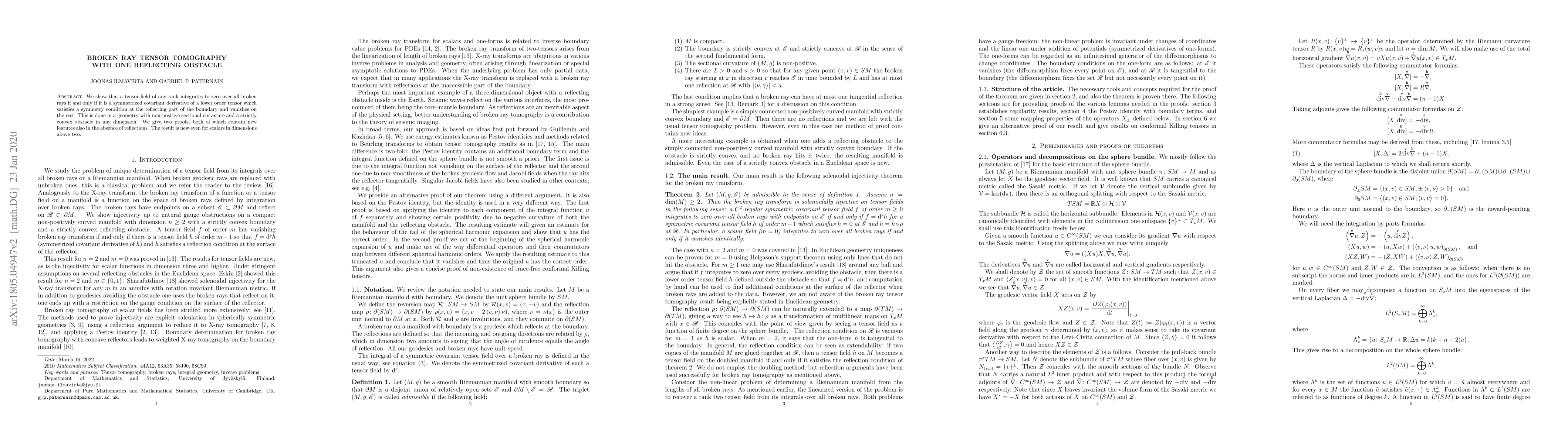 This paper proves that a tensor field of any rank integrates to zero over broken rays in a non-positive curvature geometry with a convex reflecting obstacle if it is a symmetrized covariant derivative of a lower order tensor that meets specific boundary conditions. The findings hold new features even without reflections and extend to scalars in dimensions above two.