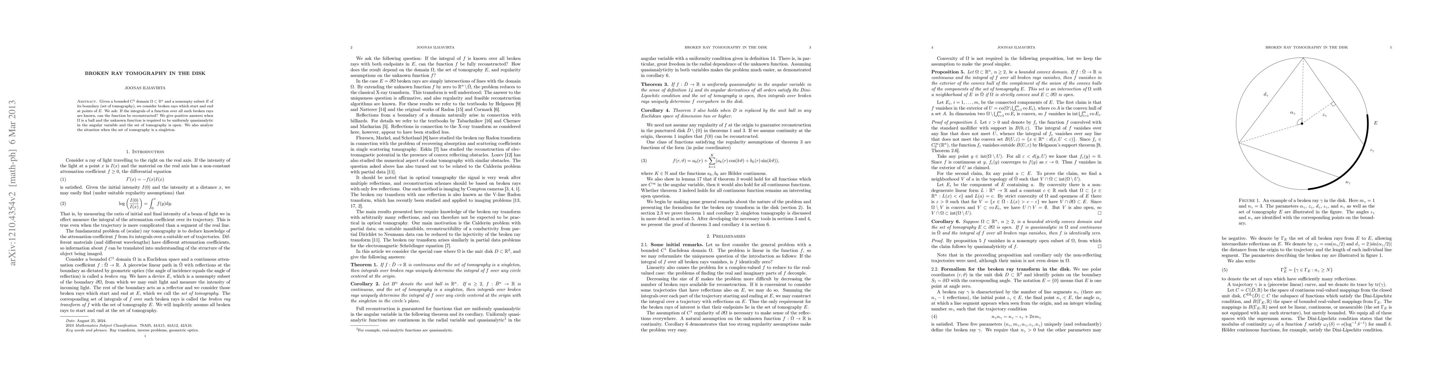 Given a bounded $C^1$ domain $\Omega\subset\R^n$ and a nonempty subset $E$ of its boundary (set of tomography), we consider broken rays which start and end at points of $E$. We ask: If the integrals of a function over all such broken rays are known, can the function be reconstructed? We give positive answers when $\Omega$ is a ball and the unknown function is required to be uniformly quasianalytic in the angular variable and the set of tomography is open. We also analyze the situation when the set of tomography is a singleton.