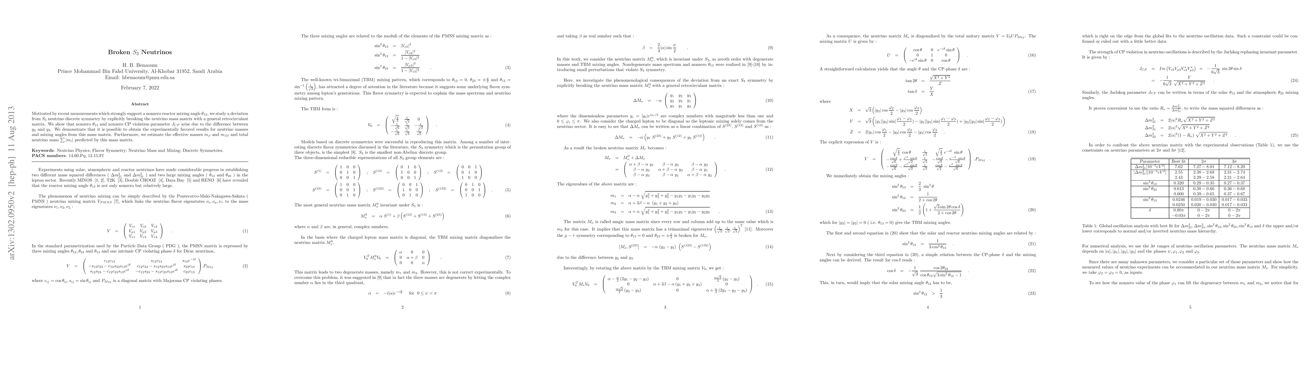 This paper explores a deviation from the $S_3$ neutrino symmetry by breaking the neutrino mass matrix with a retrocirculant matrix, leading to nonzero $\theta_{13}$ and CP violation parameter $J_{CP}$. It demonstrates how this approach can yield experimentally favored results for neutrino masses and mixing angles.