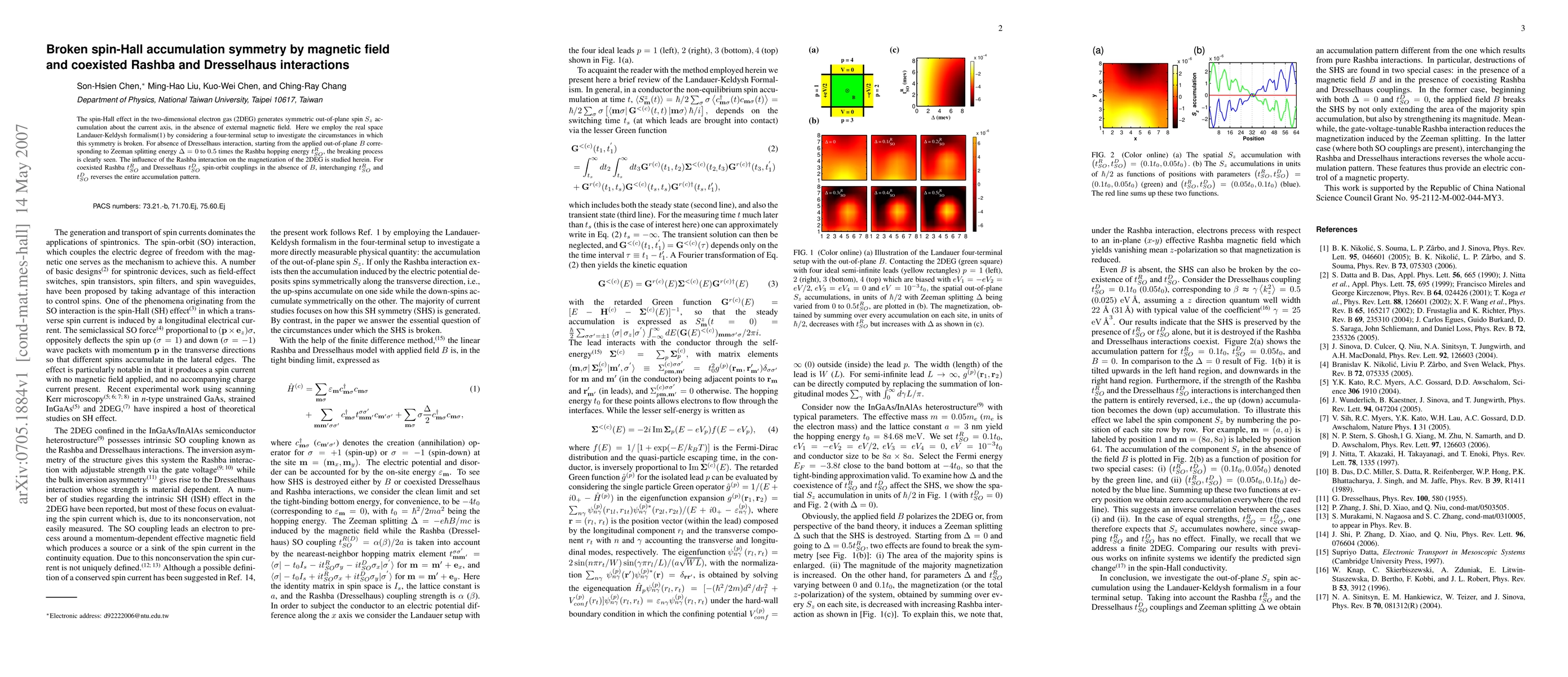 The spin-Hall effect in the two-dimensional electron gas (2DEG) generates symmetric out-of-plane spin Sz accumulation about the current axis in the absence of external magnetic field. Here we employ the real space Landauer-Keldysh formalism [B. K. Nikolic et al., Phys. Rev. Lett. 95, 046601 (2005); Phys. Rev. B 73, 075303 (2006)] by considering a four-terminal setup to investigate the circumstances in which this symmetry is broken. For the absence of Dresselhaus interaction, starting from the applied out-of-plane B corresponding to Zeeman splitting energy 0 - 0.5 times the Rashba hopping energy tR, the breaking process is clearly seen. The influence of the Rashba interaction on the magnetization of the 2DEG is studied herein. For coexisted Rashba tR and Dresselhaus tD spin-orbit couplings in the absence of B, interchanging tR and tD reverses the entire accumulation pattern.