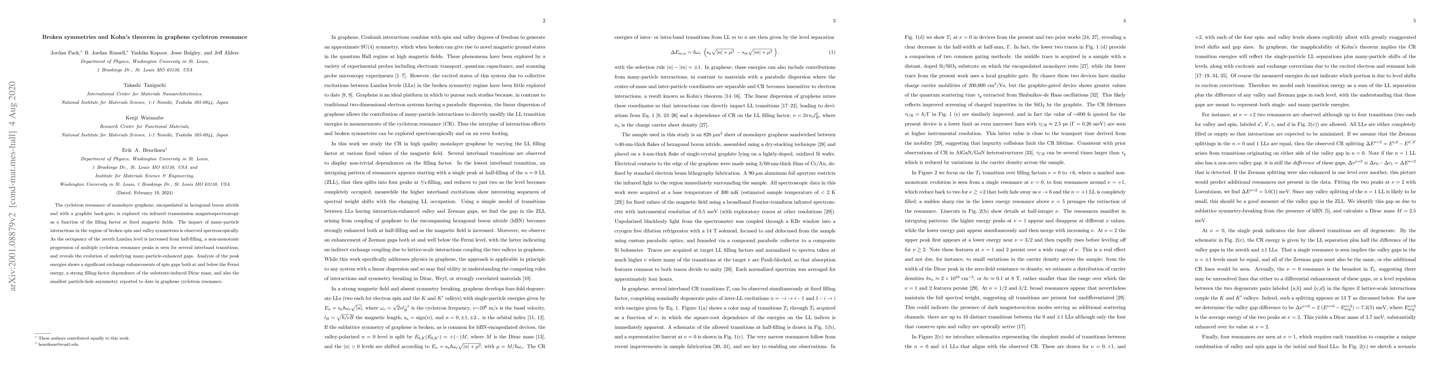 This research investigates graphene's cyclotron resonance in hexagonal boron nitride-encapsulated graphene, observing multiple cyclotron resonance peaks as the lowest Landau level occupancy changes. The study reveals enhanced spin gaps, a larger Dirac mass at half-filling, and particle-hole asymmetry, attributing these findings to the boron nitride's role in revealing interaction-enhanced broken symmetries in graphene.