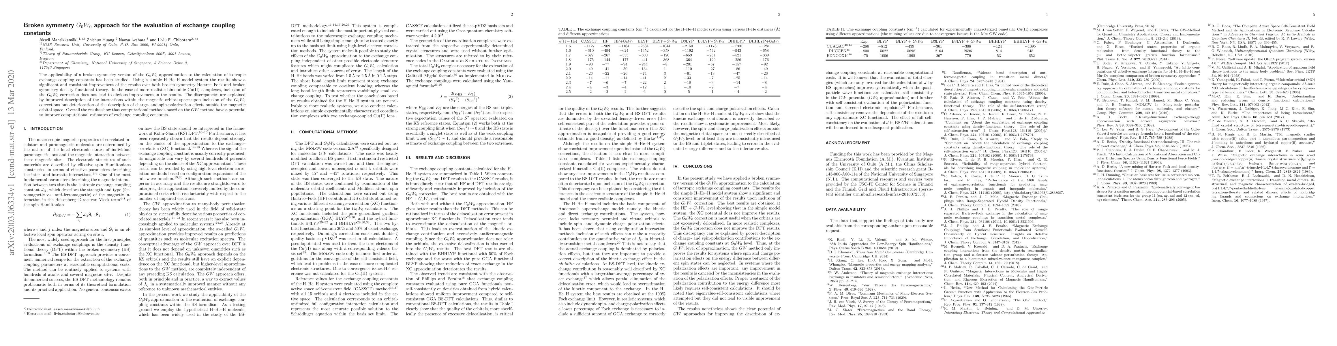 A broken symmetry $G_0W_0$ approach improves exchange coupling constant calculations over Hartree-Fock and density functional theory for certain systems, but not others.