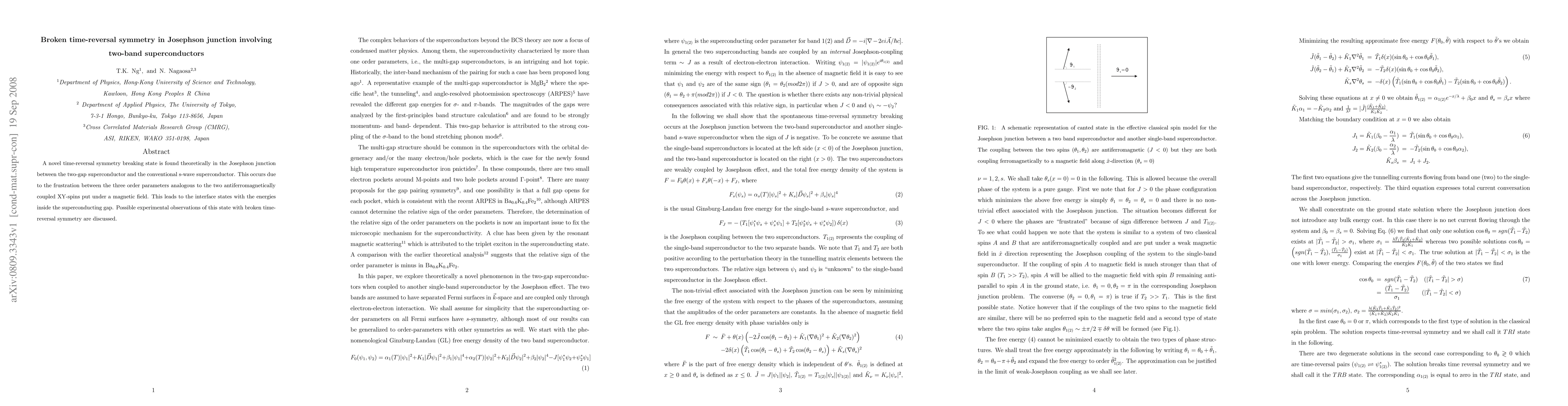 The study reveals a theoretical prediction of a time-reversal symmetry breaking state in a Josephson junction involving two-gap and conventional s-wave superconductors, due to order parameter frustration. This phenomenon could manifest interface states within the superconducting gap, with potential experimental verification.