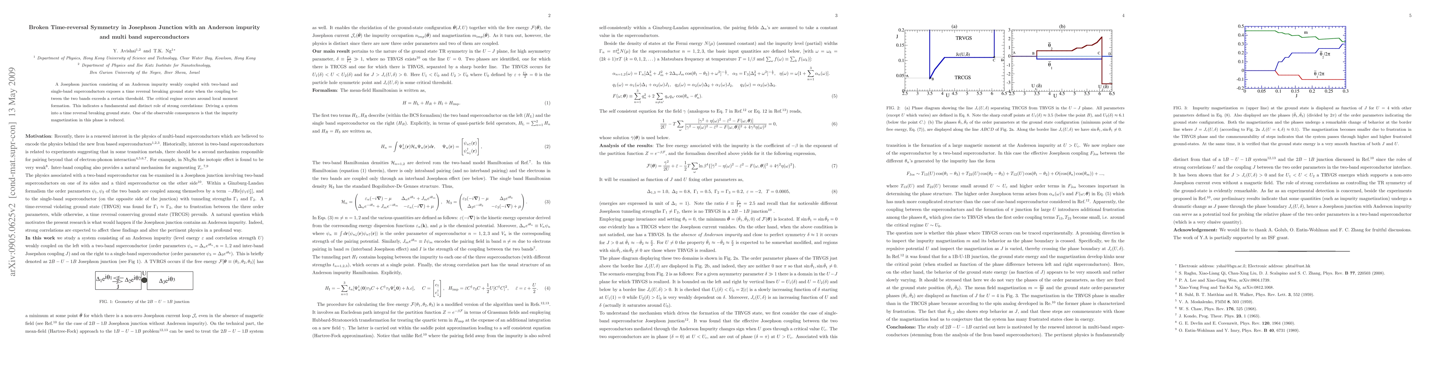 Summary: The study reveals that a Josephson junction with an Anderson impurity and coupled to multi-band superconductors exhibits a time-reversal breaking ground state when interband coupling surpasses a threshold, driven by strong correlations, leading to reduced impurity magnetization.