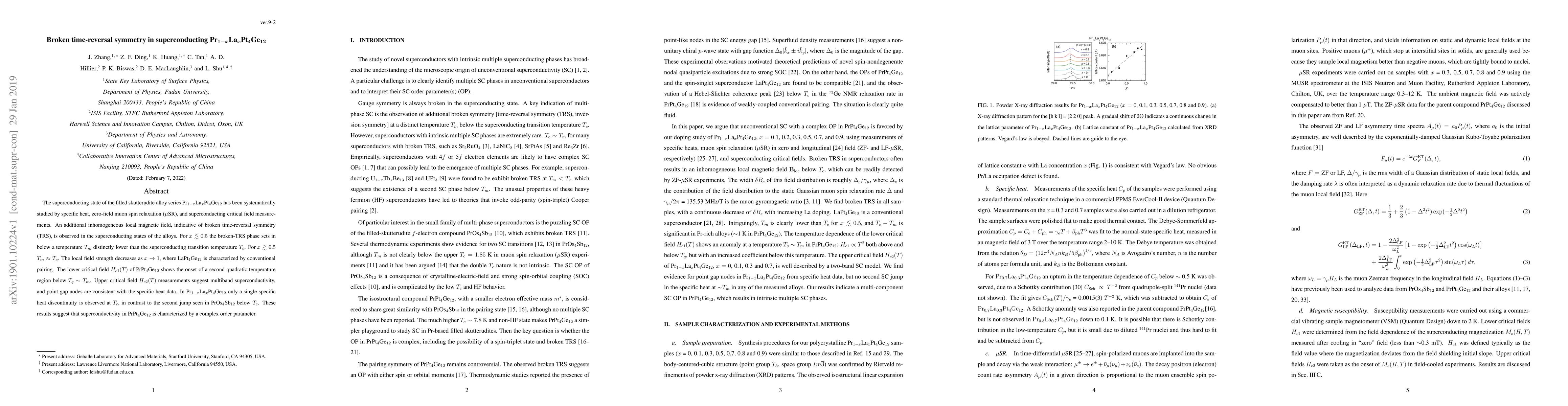 The superconducting state of the filled skutterudite alloy series Pr$_{1-x}$La$_{x}$Pt$_{4}$Ge$_{12}$ has been systematically studied by specific heat, zero-field muon spin relaxation ($\mu$SR), and superconducting critical field measurements. An additional inhomogeneous local magnetic field, indicative of broken time-reversal symmetry (TRS), is observed in the superconducting states of the alloys. For $x \lesssim 0.5$ the broken-TRS phase sets in below a temperature $T_m$ distinctly lower than the superconducting transition temperature $T_c$. For $x \gtrsim 0.5$ $T_m \approx T_c$. The local field strength decreases as $x \to 1$, where LaPt$_{4}$Ge$_{12}$ is characterized by conventional pairing. The lower critical field $H_{c1}(T)$ of PrPt$_{4}$Ge$_{12}$ shows the onset of a second quadratic temperature region below $T_q \sim T_m$. Upper critical field $H_{c2}(T)$ measurements suggest multiband superconductivity, and point gap nodes are consistent with the specific heat data. In Pr$_{1-x}$La$_{x}$Pt$_{4}$Ge$_{12}$ only a single specific heat discontinuity is observed at $T_c$, in contrast to the second jump seen in PrOs$_{4}$Sb$_{12}$ below $T_c$. These results suggest that superconductivity in PrPt$_{4}$Ge$_{12}$ is characterized by a complex order parameter.
