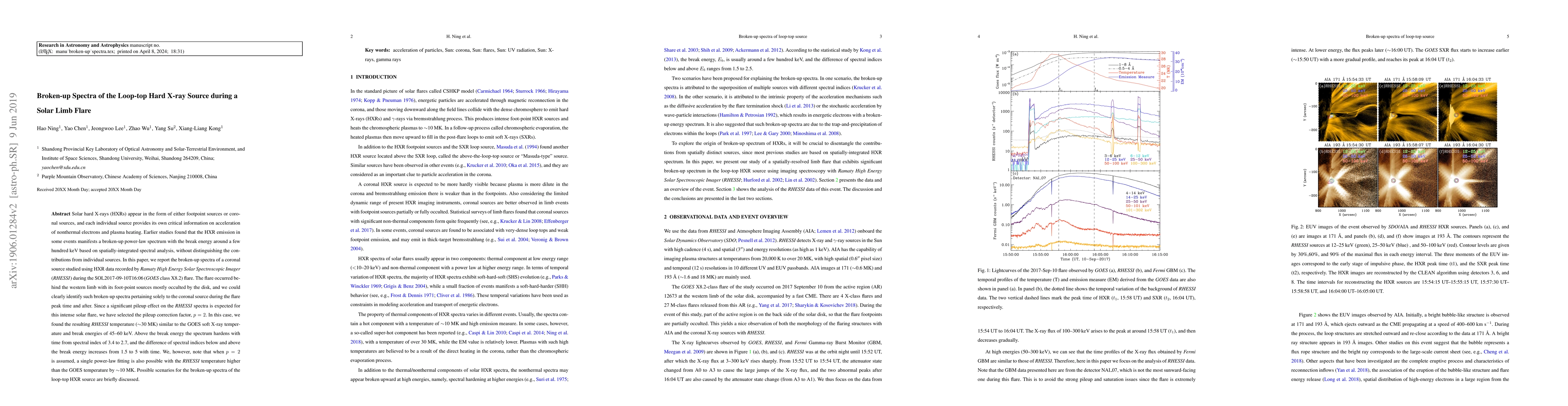 This paper investigates the broken-up power-law spectra of a coronal source during the SOL2017-09-10T16:06 X8.2 solar flare using RHESSI data, finding break energies of 45-60 keV and a temperature of ~30 MK. The spectral index hardens over time, suggesting evolving acceleration mechanisms for nonthermal electrons.