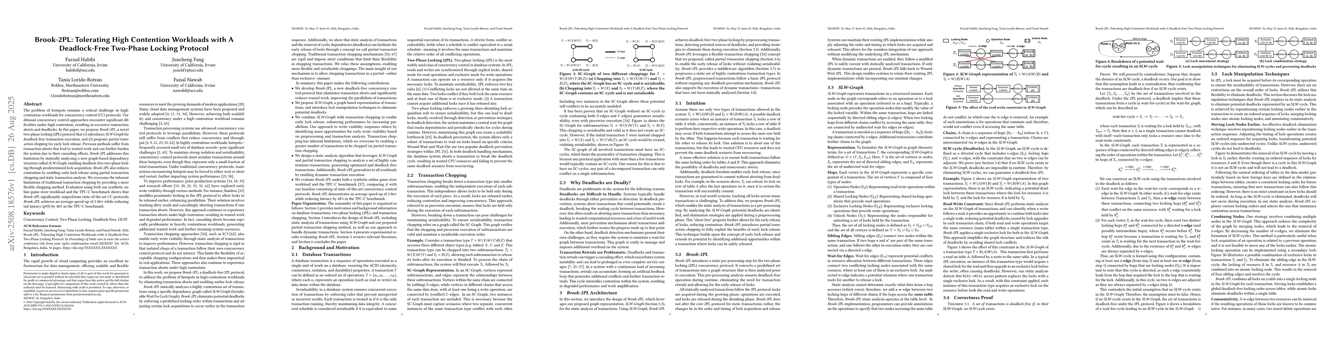 The problem of hotspots remains a critical challenge in high-contention workloads for concurrency control (CC) protocols. Traditional concurrency control approaches encounter significant difficulties under high contention, resulting in excessive transaction aborts and deadlocks. In this paper, we propose Brook-2PL, a novel two-phase locking (2PL) protocol that (1) introduces SLW-Graph for deadlock-free transaction execution, and (2) proposes partial transaction chopping for early lock release. Previous methods suffer from transaction aborts that lead to wasted work and can further burden the system due to their cascading effects. Brook-2PL addresses this limitation by statically analyzing a new graph-based dependency structure called SLW-Graph, enabling deadlock-free two-phase locking through predetermined lock acquisition. Brook-2PL also reduces contention by enabling early lock release using partial transaction chopping and static transaction analysis. We overcome the inherent limitations of traditional transaction chopping by providing a more flexible chopping method. Evaluation using both our synthetic online game store workload and the TPC-C benchmark shows that Brook-2PL significantly outperforms state-of-the-art CC protocols. Brook-2PL achieves an average speed-up of 2.86x while reducing tail latency (p95) by 48% in the TPC-C benchmark.