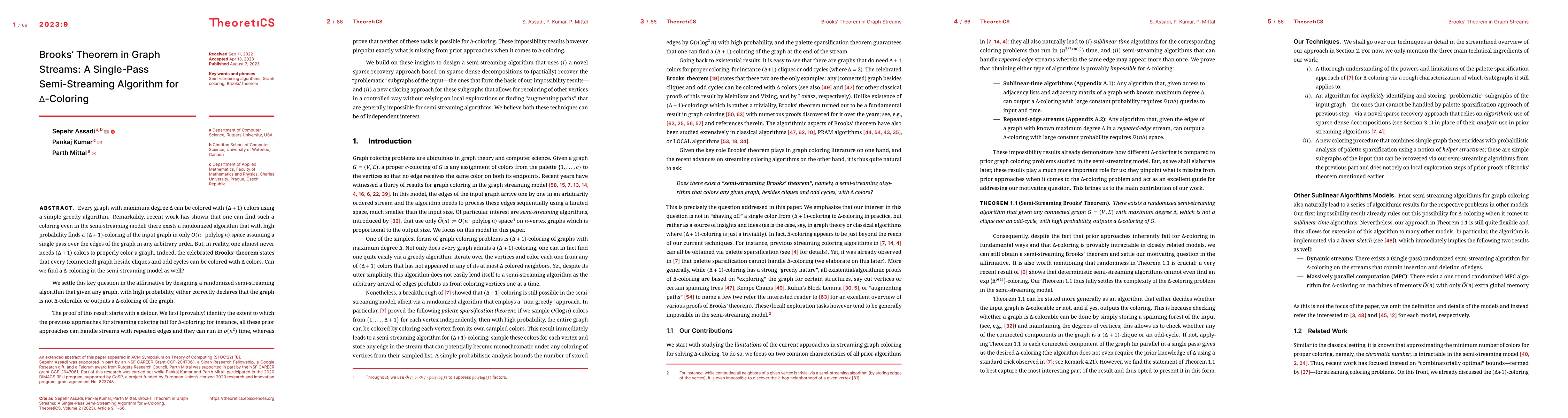 This paper presents a randomized semi-streaming algorithm that determines whether a graph with maximum degree $\Delta$ can be $\Delta$-colored, aligning with Brooks' theorem, and if so, provides such a coloring. The algorithm overcomes limitations of previous approaches by employing a sparse-recovery technique and a new coloring method for problematic subgraphs.