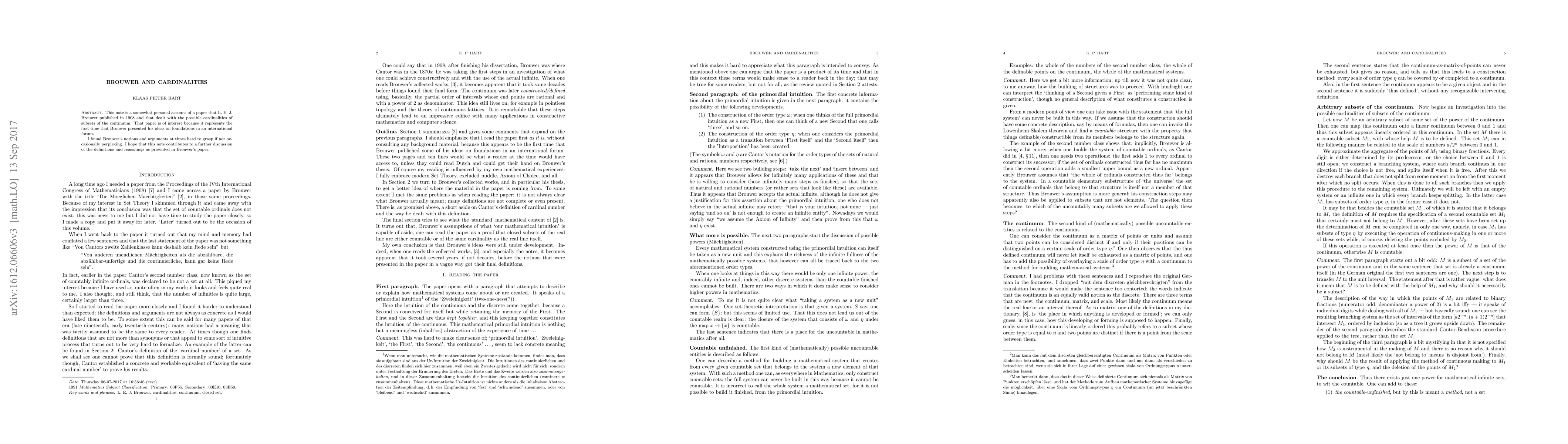 Summary: This paper explores L. E. J. Brouwer's examination of the potential cardinalities of subsets within the continuum, delving into foundational aspects of set theory.