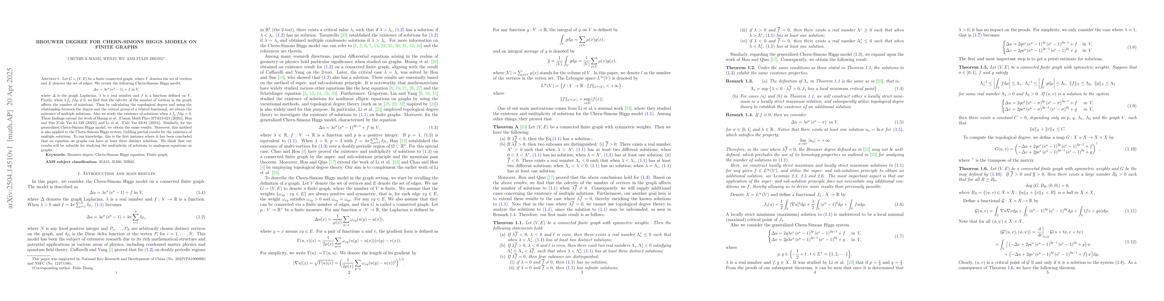 The paper presents a detailed analysis using the Brouwer degree theory to establish the existence of multiple solutions for Chern-Simons Higgs models on finite graphs, extending previous findings and providing new insights into solution multiplicity.