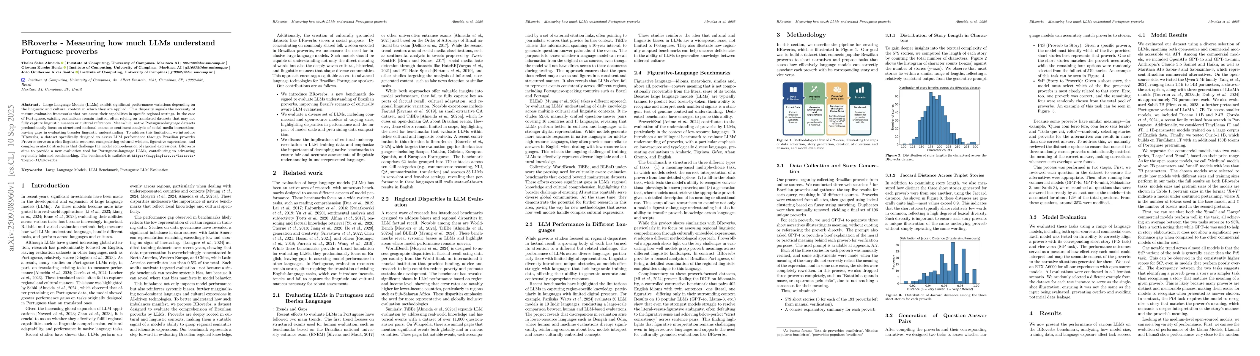 Large Language Models (LLMs) exhibit significant performance variations depending on the linguistic and cultural context in which they are applied. This disparity signals the necessity of mature evaluation frameworks that can assess their capabilities in specific regional settings. In the case of Portuguese, existing evaluations remain limited, often relying on translated datasets that may not fully capture linguistic nuances or cultural references. Meanwhile, native Portuguese-language datasets predominantly focus on structured national exams or sentiment analysis of social media interactions, leaving gaps in evaluating broader linguistic understanding. To address this limitation, we introduce BRoverbs, a dataset specifically designed to assess LLM performance through Brazilian proverbs. Proverbs serve as a rich linguistic resource, encapsulating cultural wisdom, figurative expressions, and complex syntactic structures that challenge the model comprehension of regional expressions. BRoverbs aims to provide a new evaluation tool for Portuguese-language LLMs, contributing to advancing regionally informed benchmarking. The benchmark is available at https://huggingface.co/datasets/Tropic-AI/BRoverbs.