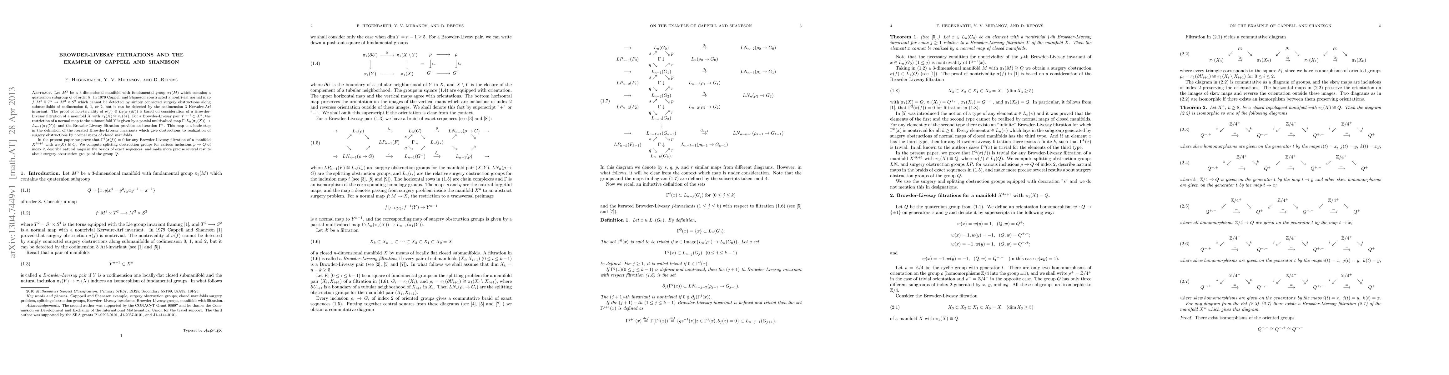 Let $M^3$ be a 3-dimensional manifold with fundamental group $\pi_1(M)$ which contains a quaternion subgroup $Q$ of order 8. In 1979 Cappell and Shaneson constructed a nontrivial normal map $ f\colon M^3\times T^2\to M^3\times S^2$ which cannot be detected by simply connected surgery obstructions along submanifolds of codimension 0, 1, or 2, but it can be detected by the codimension 3 Kervaire-Arf invariant. The proof of non-triviality of $\sigma(f)\in L_5(\pi_1(M))$ is based on consideration of a Browder-Livesay filtration of a manifold $X$ with $\pi_1(X)\cong \pi_1(M)$. For a Browder-Livesay pair $Y^{n-1}\subset X^n$, the restriction of a normal map to the submanifold $Y$ is given by a partial multivalued map $\Gamma\colon L_n(\pi_1(X))\to L_{n-1}(\pi_1(Y))$, and the Browder-Livesay filtration provides an iteration $\Gamma^n$. This map is a basic step in the definition of the iterated Browder-Livesay invariants which give obstructions to realization of surgery obstructions by normal maps of closed manifolds. In the present paper we prove that $\Gamma^3(\sigma(f))=0$ for any Browder-Livesay filtration of a manifold $X^{4k+1}$ with $\pi_1(X)\cong Q$. We compute splitting obstruction groups for various inclusions $\rho\to Q$ of index 2, describe natural maps in the braids of exact sequences, and make more precise several results about surgery obstruction groups of the group $Q$.