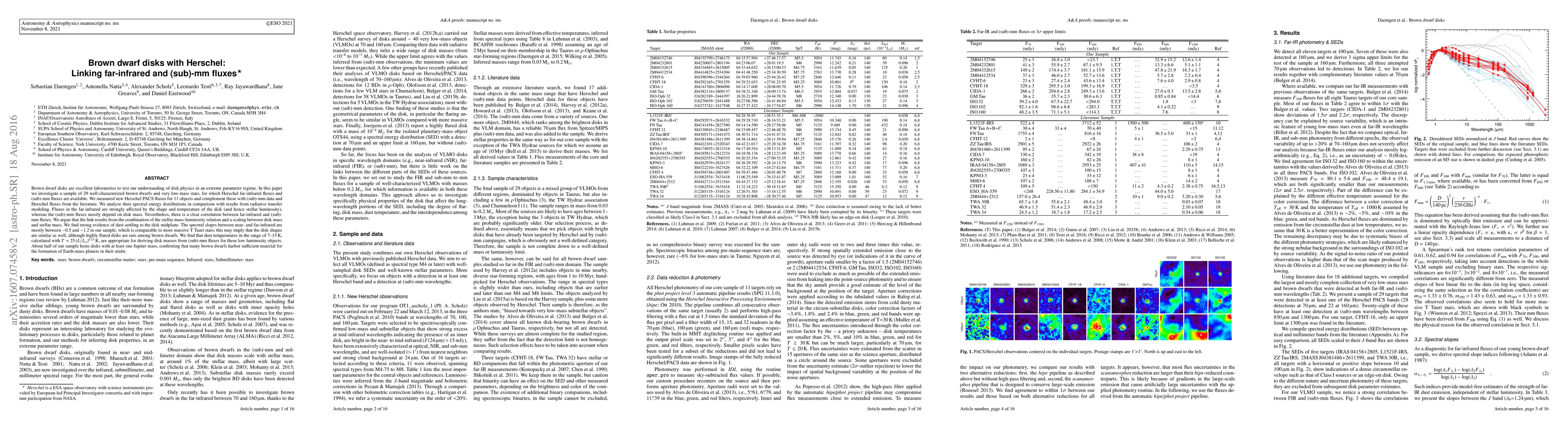 This paper investigates the spectral energy distributions of 29 brown dwarfs and very low mass stars using Herschel data, finding correlations between far-infrared and (sub)-mm fluxes due to stellar mass and disk mass scaling. It also reveals evidence of dust settling and suggests appropriate dust temperatures for disk mass derivation.