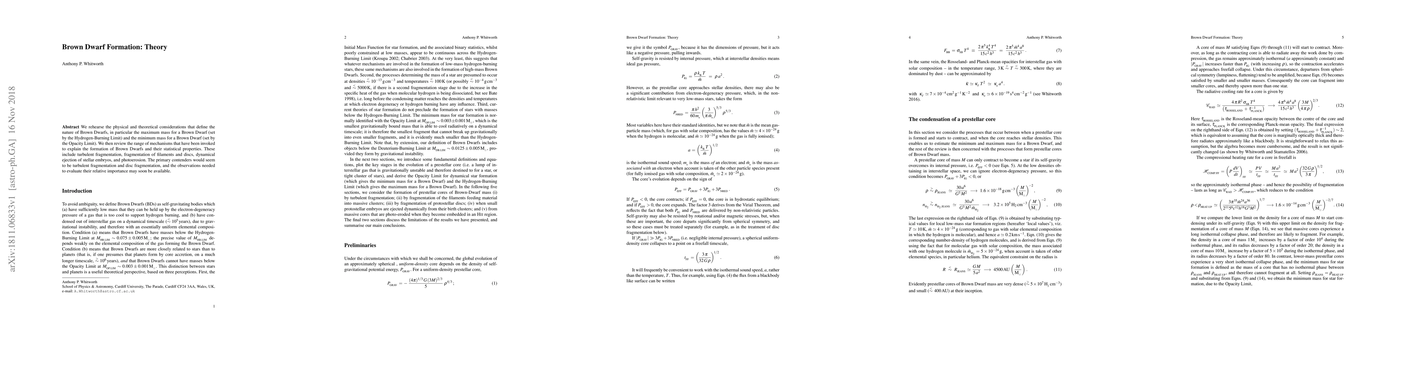 This paper explores the theoretical underpinnings of brown dwarf formation, focusing on the mass limits and formation mechanisms such as turbulent fragmentation and disc fragmentation. It highlights the potential for observational data to determine the relative significance of these mechanisms.