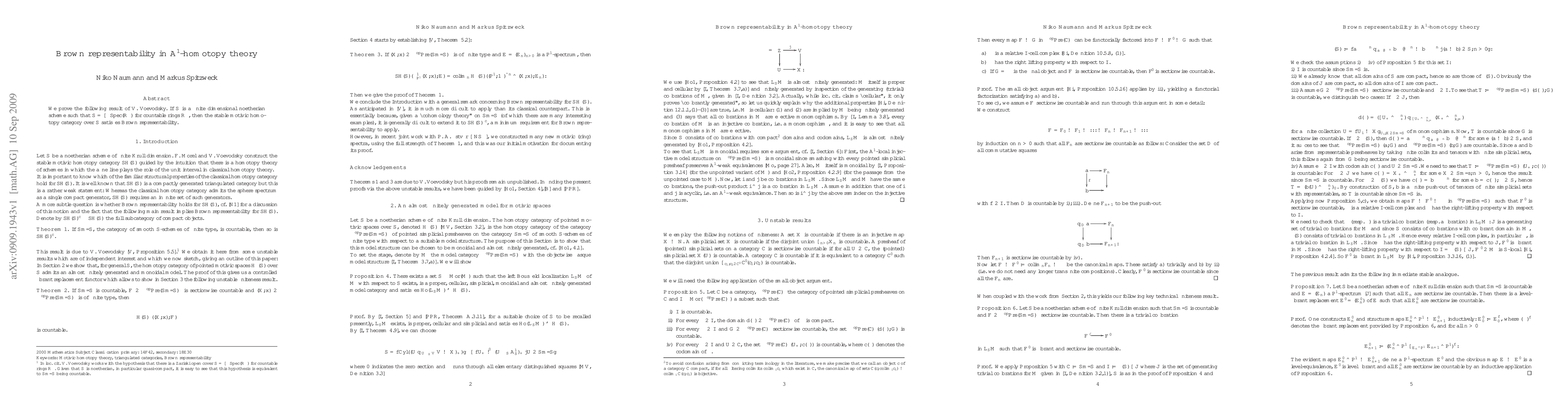 Summary: This paper proves that the stable motivic homotopy category over a finite-dimensional noetherian scheme decomposed into countable spectra of rings satisfies Brown representability, establishing a key result in $\A^1$-homotopy theory by V. Voevodsky.