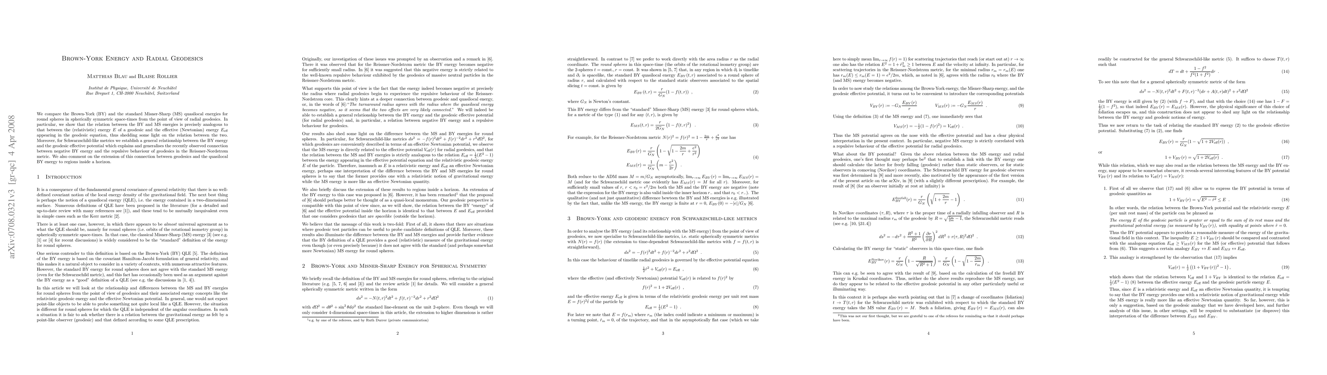 This paper compares Brown-York and Misner-Sharp quasilocal energies in spherically symmetric spacetimes, revealing an analogy between them and the relativistic energy of geodesics. It establishes a relationship between the Brown-York energy and the geodesic effective potential, explaining the connection between negative BY energy and repulsive geodesic behavior in Schwarzschild-like metrics.