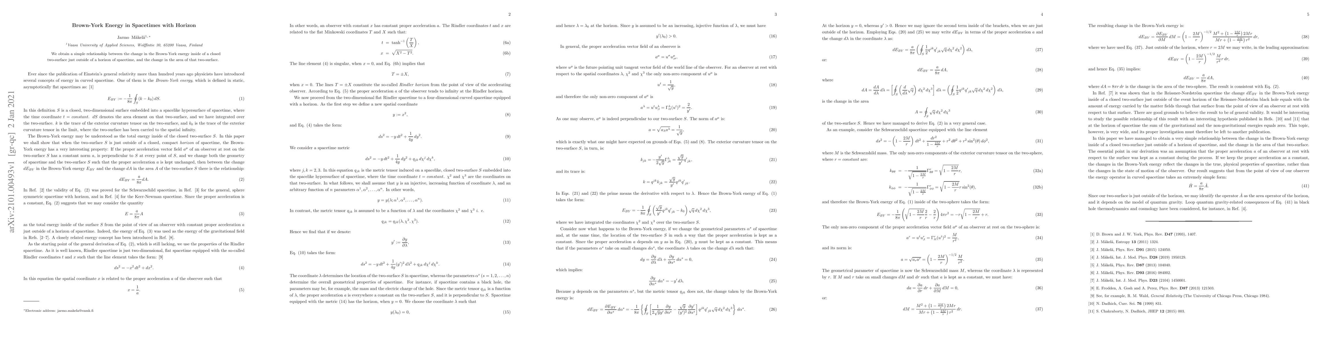 Summary: This paper establishes a direct correlation between the variation in Brown-York energy within a closed two-surface near a horizon and the corresponding change in the area of that surface. The findings provide insights into the dynamics of energy in such spacetime regions.
