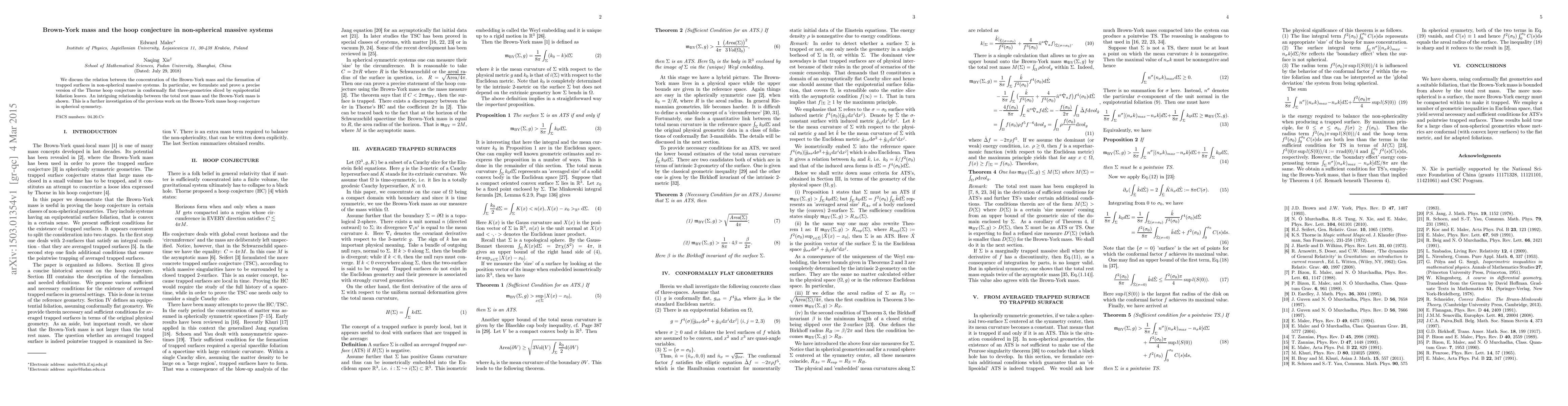 This paper investigates the connection between the Brown-York mass and trapped surfaces in non-spherical massive systems, proving a version of the Thorne hoop conjecture in conformally flat geometries. It reveals an interesting relationship between total rest mass and Brown-York mass, extending previous research on spherical symmetry.