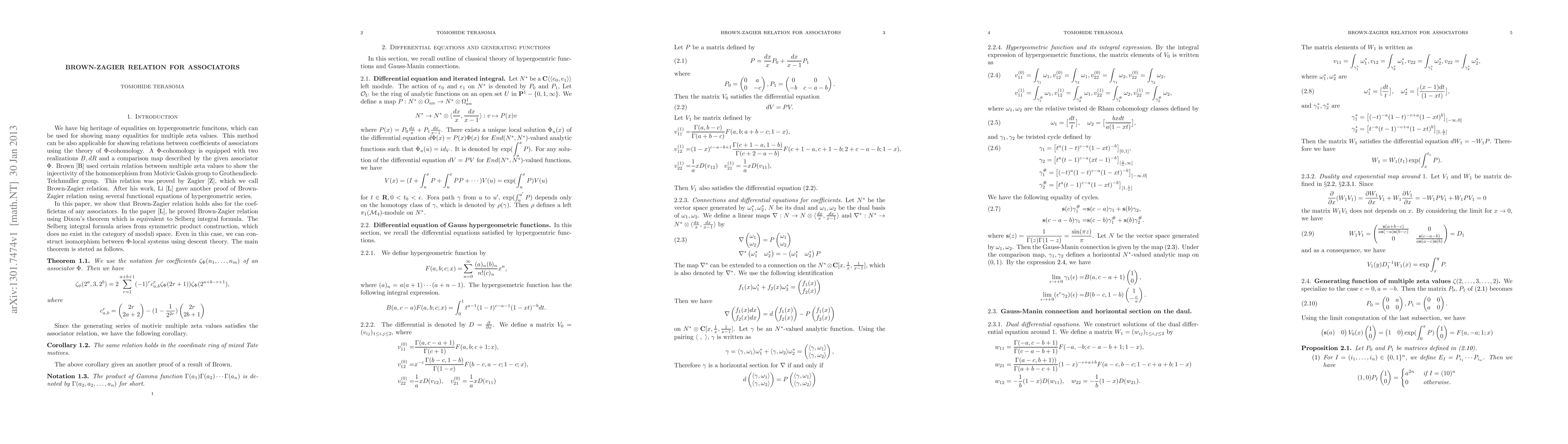 The paper provides a proof that any associator satisfies the Brown-Zagier relation, extending Francis Brown's work on motivic Galois groups.