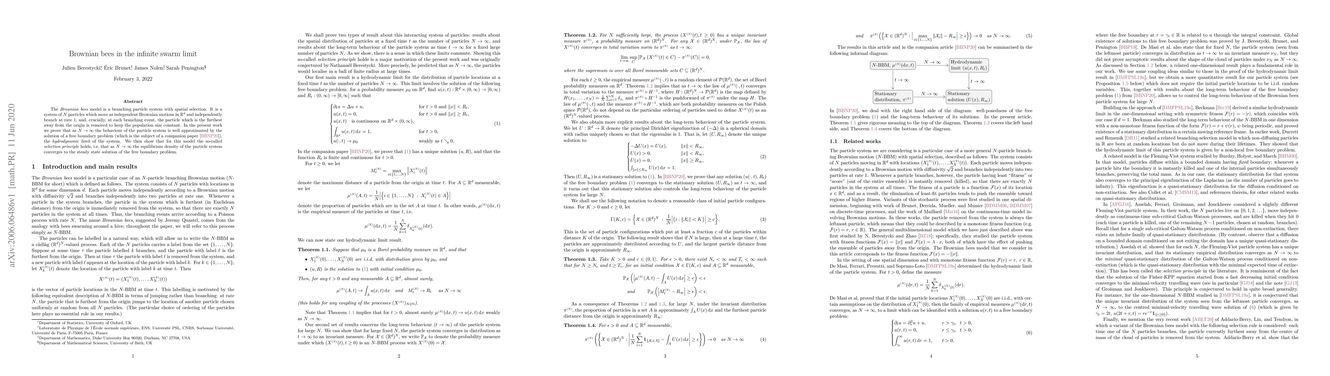 Researchers study a model of bees that branch out in all directions, with the farthest particle removed, to show it approaches a free boundary problem as more particles are added, approximating an equilibrium density.