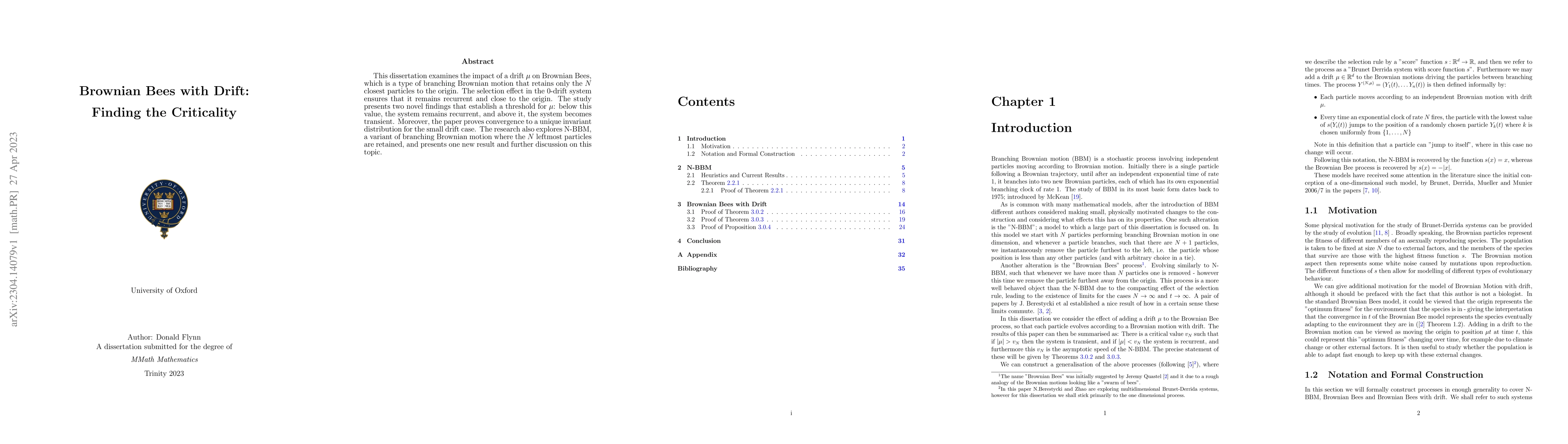 This dissertation examines the impact of a drift {\mu} on Brownian Bees, which is a type of branching Brownian motion that retains only the N closest particles to the origin. The selection effect in the 0-drift system ensures that it remains recurrent and close to the origin. The study presents two novel findings that establish a threshold for {\mu}: below this value, the system remains recurrent, and above it, the system becomes transient. Moreover, the paper proves convergence to a unique invariant distribution for the small drift case. The research also explores N-BBM, a variant of branching Brownian motion where the N leftmost particles are retained, and presents one new result and further discussion on this topic.
