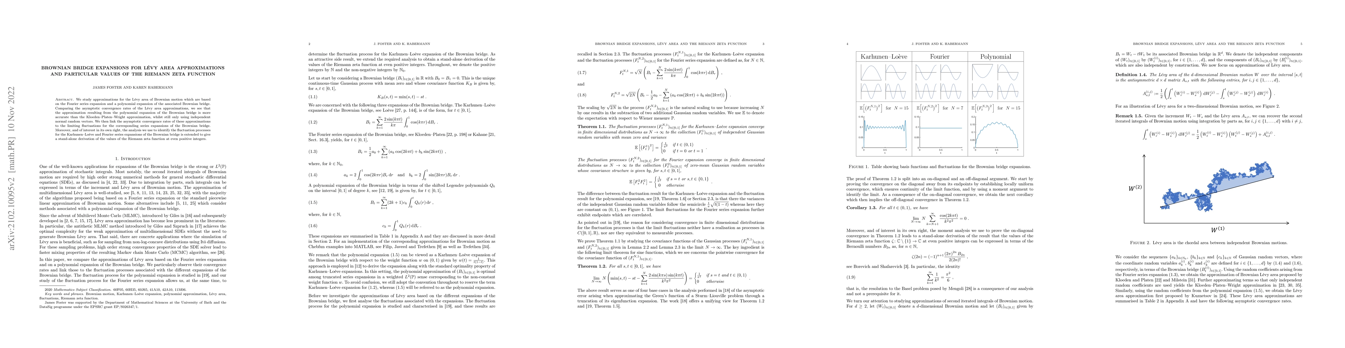 This paper investigates L\'evy area approximations for Brownian motion using Fourier and polynomial expansions of the Brownian bridge, finding the polynomial expansion to be more accurate. It also derives values of the Riemann zeta function at even positive integers using the fluctuation processes of these expansions.