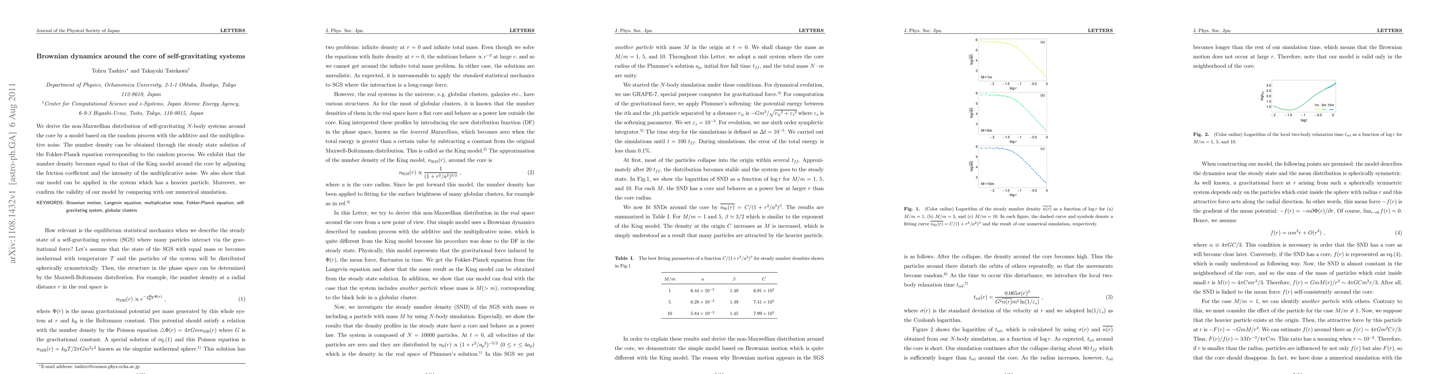 This paper derives a non-Maxwellian distribution for self-gravitating $N$-body systems around their core using a model incorporating additive and multiplicative noise. The model's steady-state solution aligns with the King model's number density near the core, and it is validated through numerical simulations.