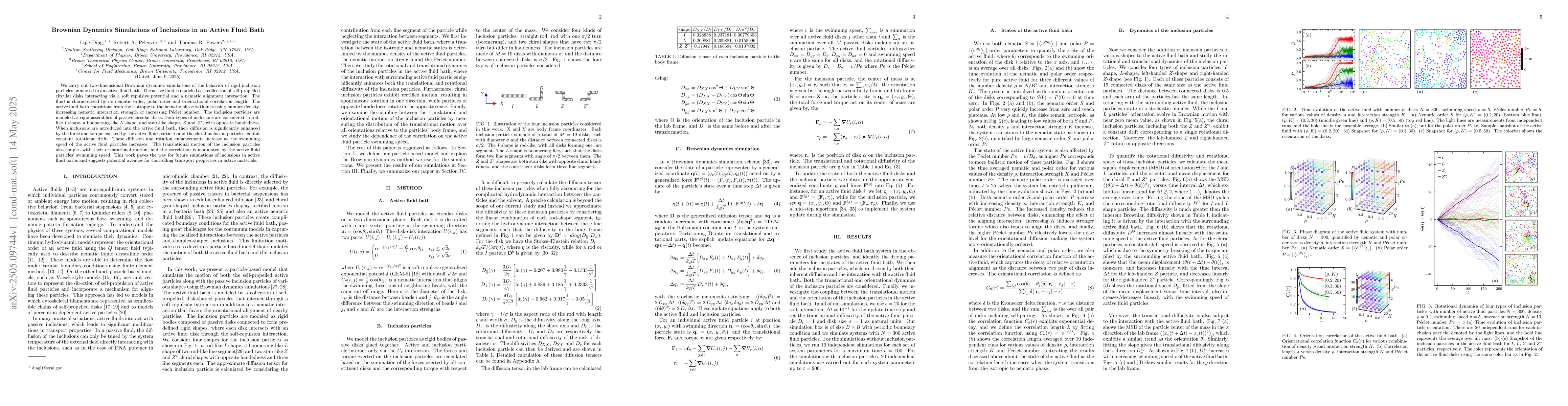Development of a simulation framework for studying inclusion particles in active fluid baths, incorporating self-propelled disk interactions and nematic ordering.