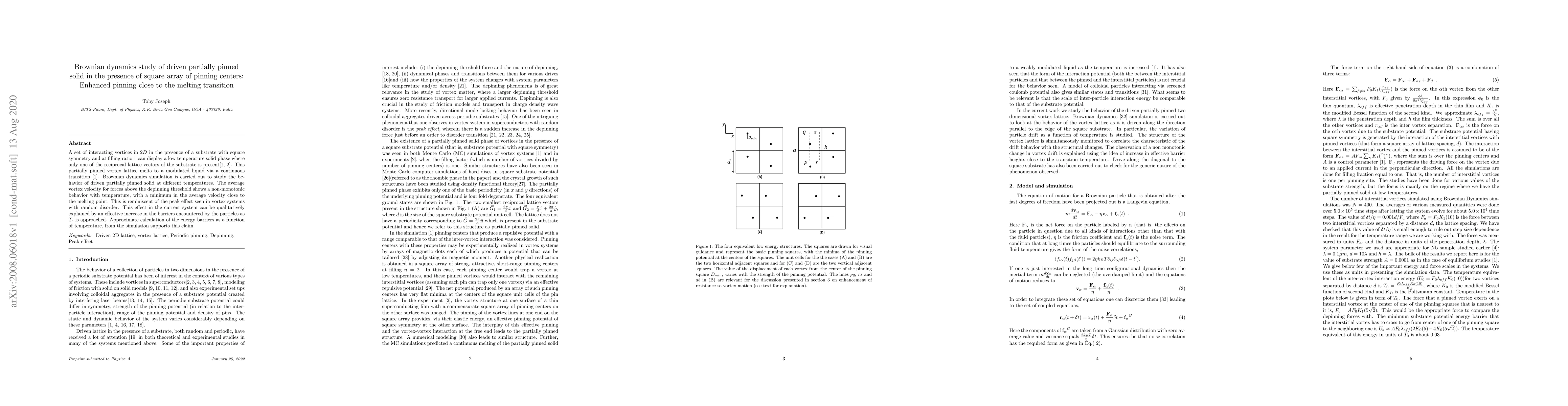 A set of interacting vortices in $2D$ in the presence of a substrate with square symmetry and at filling ratio $1$ can display a low temperature solid phase where only one of the reciprocal lattice vectors of the substrate is present\cite{toby1,fasano}. This partially pinned vortex lattice melts to a modulated liquid via a continuous transition \cite{toby1}. Brownian dynamics simulation is carried out to study the behavior of driven partially pinned solid at different temperatures. The average vortex velocity for forces above the depinning threshold shows a non-monotonic behavior with temperature, with a minimum in the average velocity close to the melting point. This is reminiscent of the peak effect seen in vortex systems with random disorder. This effect in the current system can be qualitatively explained by an effective increase in the barriers encountered by the particles as $T_c$ is approached. Approximate calculation of the energy barriers as a function of temperature, from the simulation supports this claim.