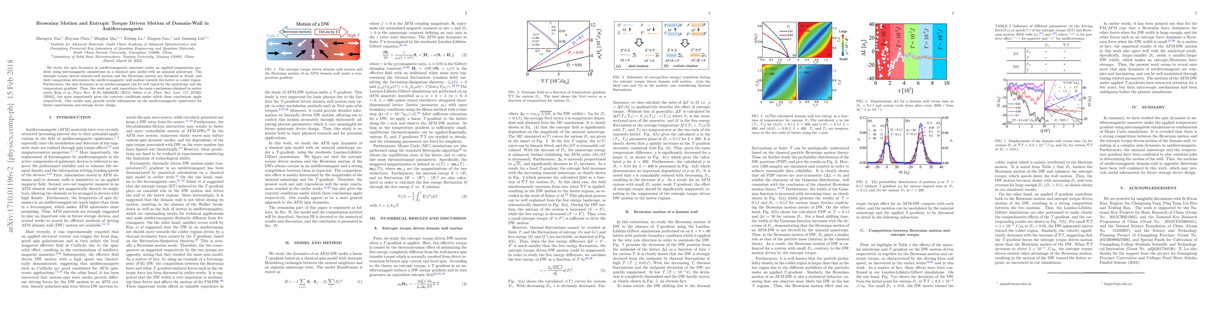 This paper investigates the spin dynamics in antiferromagnetic nanowires under temperature gradients, focusing on the interplay between entropic torque driven domain-wall motion and Brownian motion, which determine the direction of domain-wall motion. The study provides concrete conditions under which these dynamics apply, potentially aiding future antiferromagnetic spintronics research.