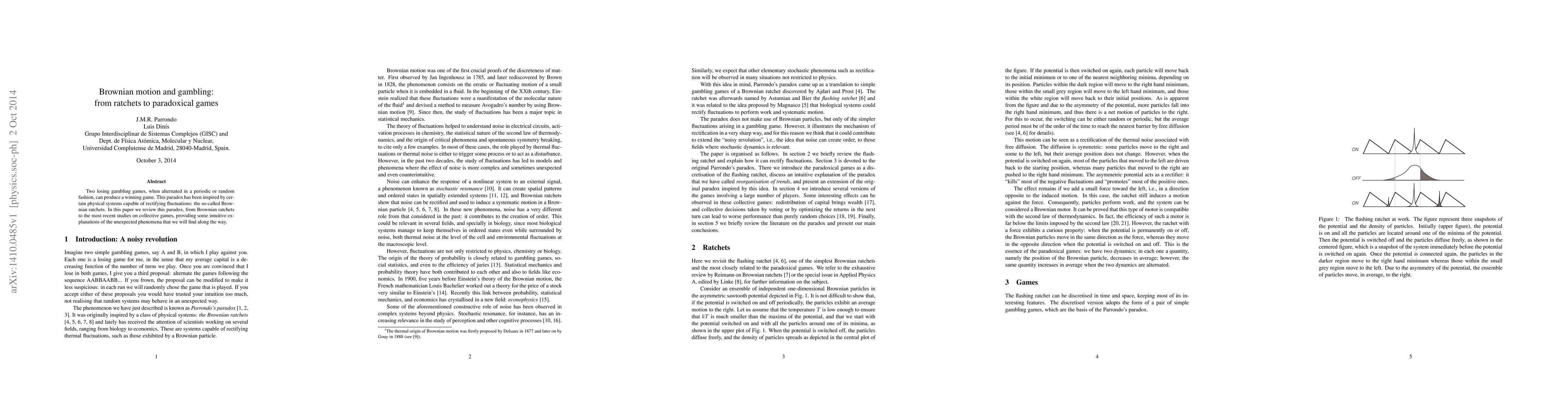 The paper reviews the paradox of alternating two losing gambling games to create a winning game, inspired by Brownian ratchets, and explores its implications from collective games, providing intuitive explanations.