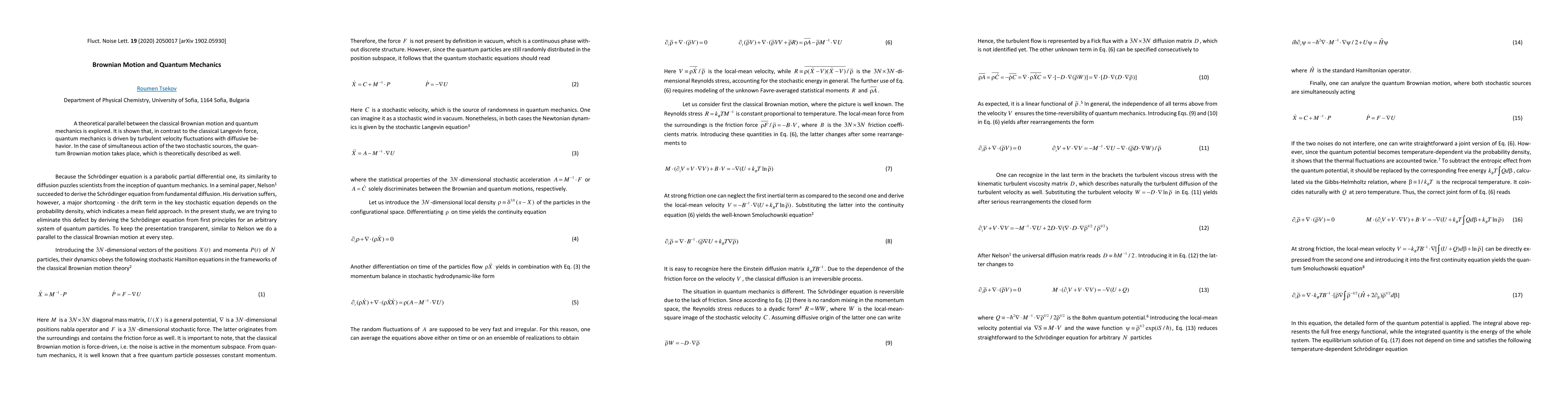 The paper theoretically explores the parallel between classical Brownian motion and quantum mechanics, describing quantum mechanics as driven by turbulent velocity fluctuations with diffusive behavior, and introducing quantum Brownian motion.