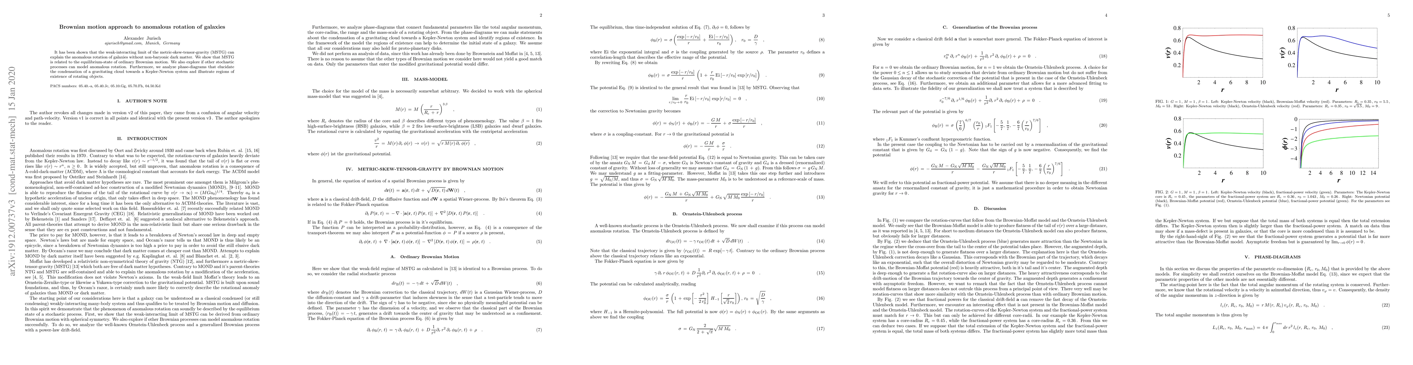 Researchers found that Brownian motion can explain anomalous galaxy rotation without dark matter, and they explored how other stochastic processes might model similar phenomena.