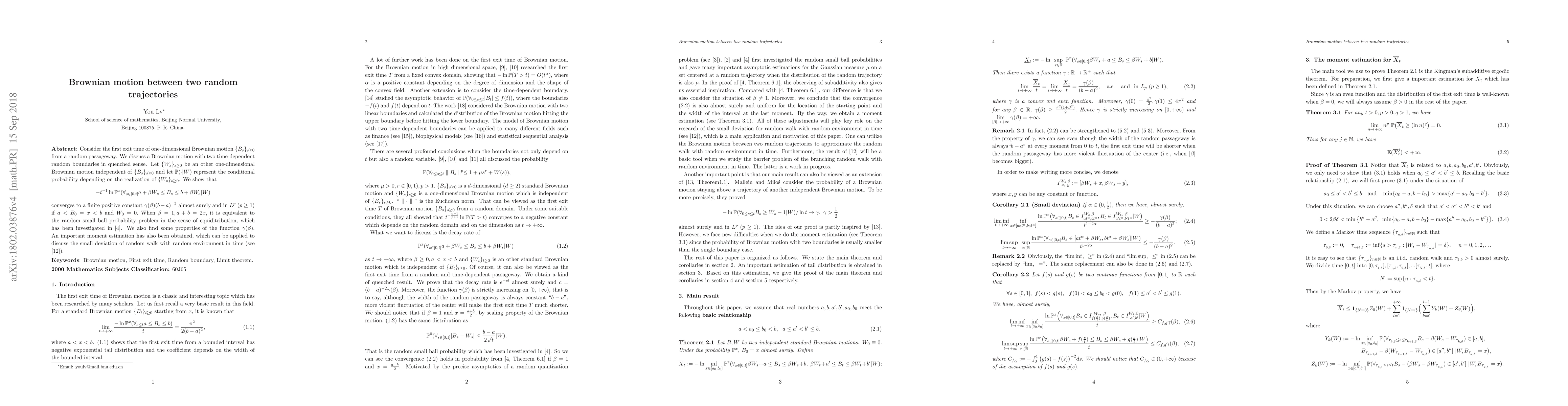 two time-dependent random boundaries in quenched sense. Let $\{W_s\}_{s\geq 0}$