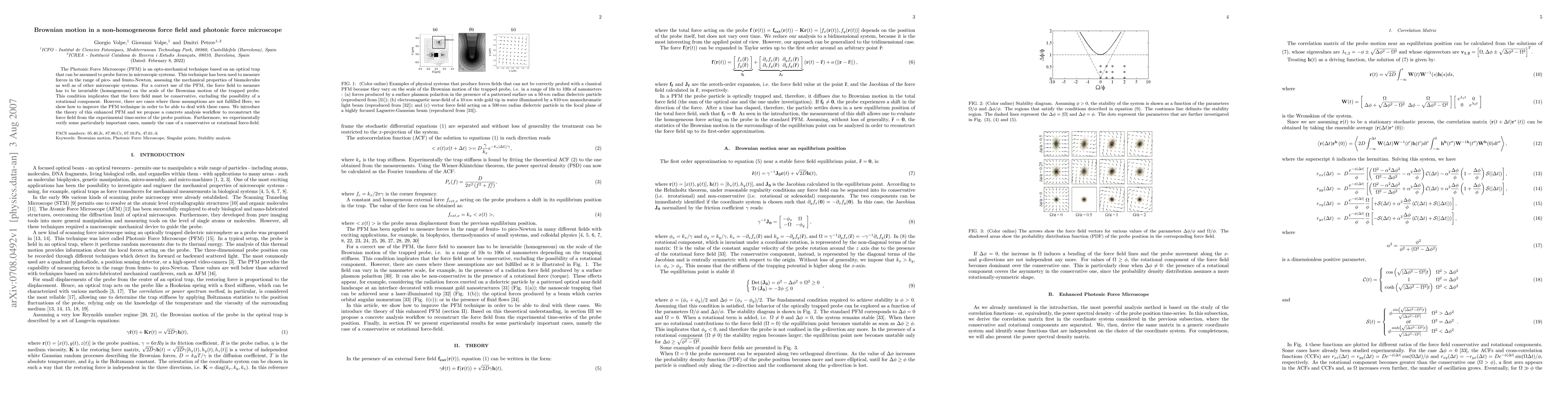 The Photonic Force Microscope (PFM) is an opto-mechanical technique based on an optical trap that can be assumed to probe forces in microscopic systems. This technique has been used to measure forces in the range of pico- and femto-Newton, assessing the mechanical properties of biomolecules as well as of other microscopic systems. For a correct use of the PFM, the force field to measure has to be invariable (homogeneous) on the scale of the Brownian motion of the trapped probe. This condition implicates that the force field must be conservative, excluding the possibility of a rotational component. However, there are cases where these assumptions are not fulfilled Here, we show how to improve the PFM technique in order to be able to deal with these cases. We introduce the theory of this enhanced PFM and we propose a concrete analysis workflow to reconstruct the force field from the experimental time-series of the probe position. Furthermore, we experimentally verify some particularly important cases, namely the case of a conservative or rotational force-field.