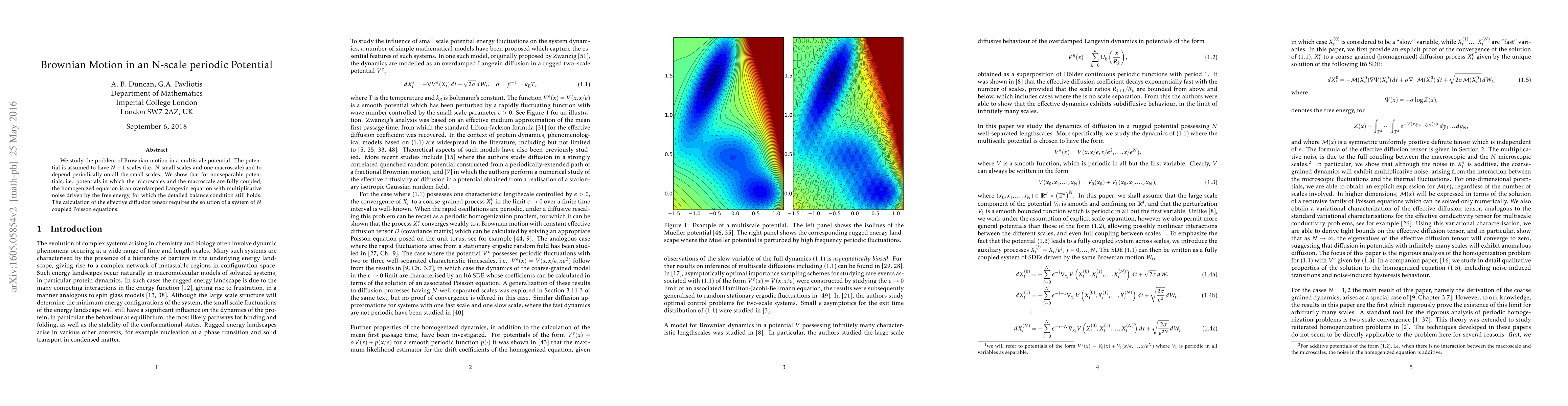 Researchers studied Brownian motion in a multiscale periodic potential with N+1 scales, finding that for nonseparable potentials, the homogenized equation is an overdamped Langevin equation driven by free energy.