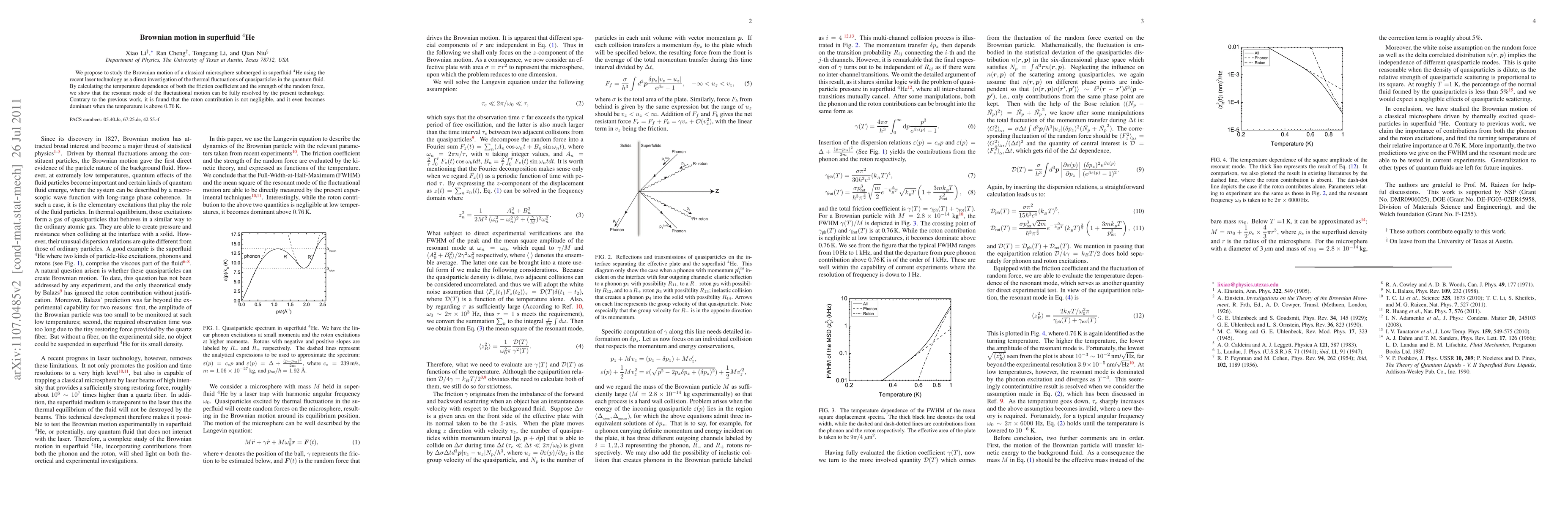 This study proposes using laser technology to investigate thermal fluctuations in superfluid $^4$He by observing Brownian motion of a microsphere. Key findings reveal that roton quasiparticles significantly impact friction and random force strength, becoming dominant above 0.76K, contradicting previous assumptions.