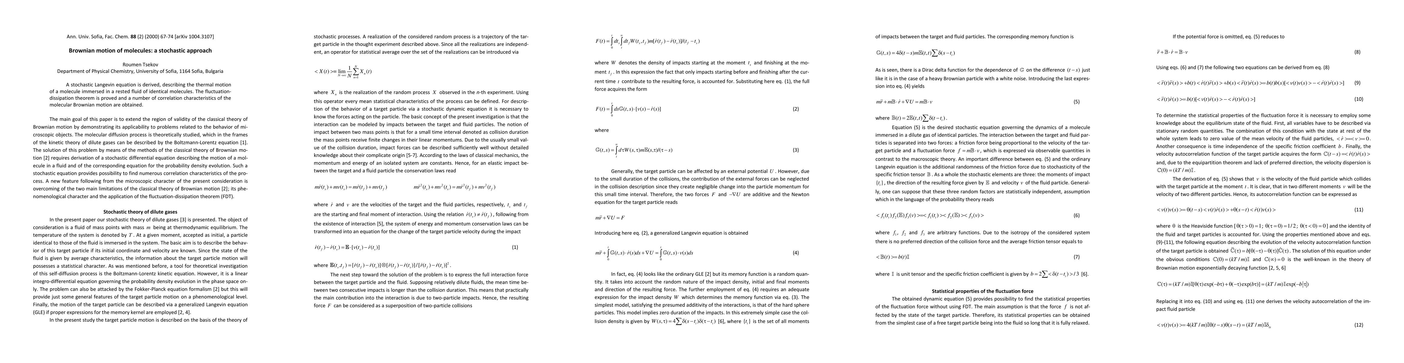 Researchers developed a stochastic model to describe the random motion of molecules in fluids, proving the fluctuation-dissipation theorem and calculating key characteristics of Brownian motion.
