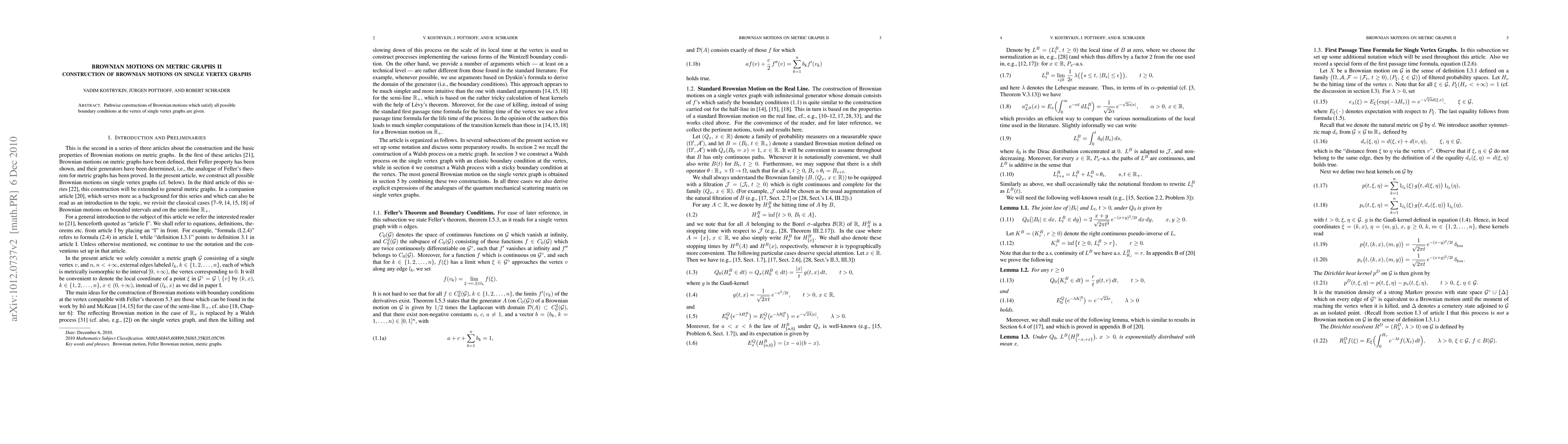 Summary: This paper provides a pathwise construction for Brownian motions on single vertex graphs, ensuring compliance with various boundary conditions at the vertex. The methodology lays the groundwork for further stochastic analysis on metric graphs.