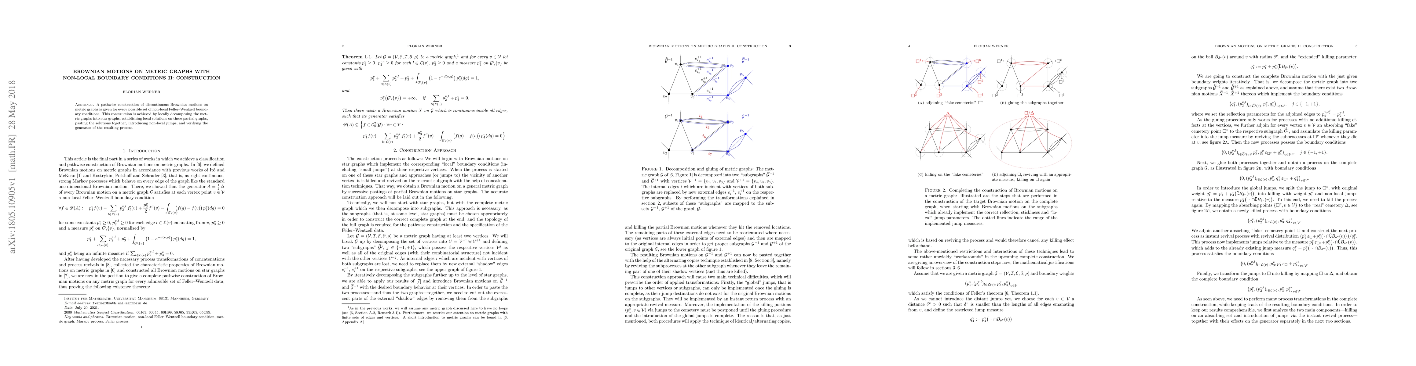 A pathwise construction of discontinuous Brownian motions on metric graphs is given for every possible set of non-local Feller-Wentzell boundary conditions. This construction is achieved by locally decomposing the metric graphs into star graphs, establishing local solutions on these partial graphs, pasting the solutions together, introducing non-local jumps, and verifying the generator of the resulting process.