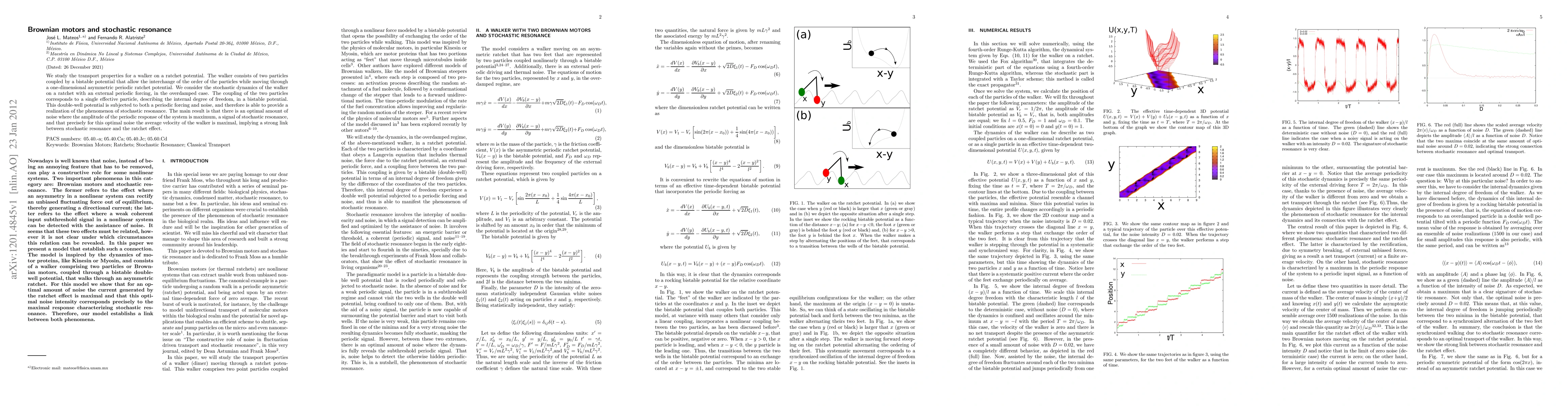 Researchers study a walker on an asymmetric ratchet potential with two particles in a bistable potential, finding that optimal noise levels can maximize the walker's velocity while inducing stochastic resonance.