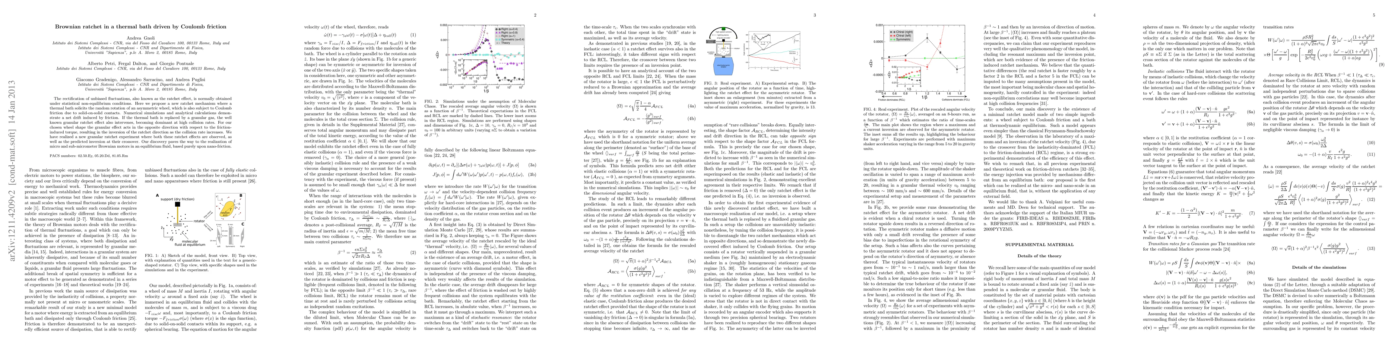 This paper proposes a novel Brownian ratchet mechanism where asymmetric wheel rotation in a thermal bath is driven by Coulomb friction from solid-on-solid contacts, demonstrating a net drift despite equilibrium conditions. At high collision rates, a granular ratchet effect emerges, reversing the direction of the ratchet as the collision rate increases, offering new insights for designing micro and sub-micrometer motors.