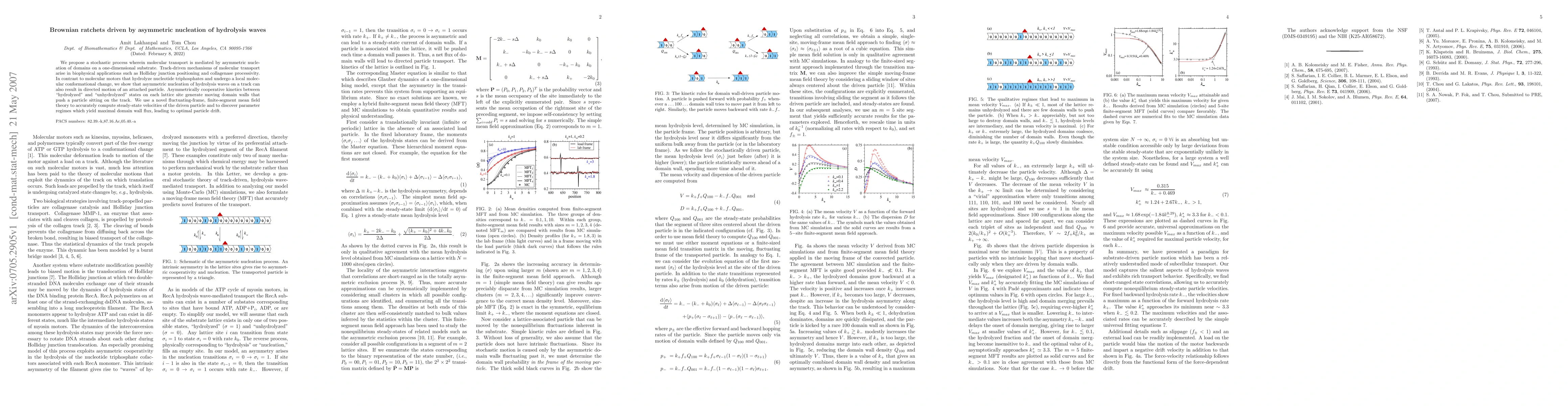 We propose a stochastic process wherein molecular transport is mediated by asymmetric nucleation of domains on a one-dimensional substrate. Track-driven mechanisms of molecular transport arise in biophysical applications such as Holliday junction positioning and collagenase processivity. In contrast to molecular motors that hydrolyze nucleotide triphosphates and undergo a local molecular conformational change, we show that asymmetric nucleation of hydrolysis waves on a track can also result in directed motion of an attached particle. Asymmetrically cooperative kinetics between ``hydrolyzed'' and ``unhydrolyzed'' states on each lattice site generate moving domain walls that push a particle sitting on the track. We use a novel fluctuating-frame, finite-segment mean field theory to accurately compute steady-state velocities of the driven particle and to discover parameter regimes which yield maximal domain wall flux, leading to optimal particle drift.