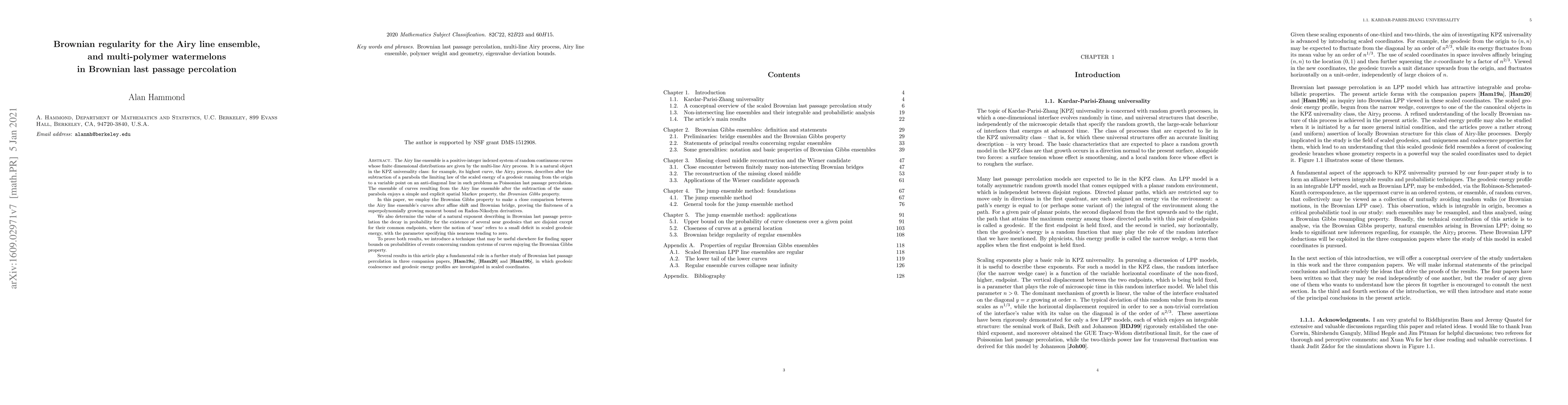 The Airy line ensemble is a positive-integer indexed system of random continuous curves whose finite dimensional distributions are given by the multi-line Airy process. It is a natural object in the KPZ universality class: for example, its highest curve, the Airy$_2$ process, describes after the subtraction of a parabola the limiting law of the scaled energy of a geodesic running from the origin to a variable point on an anti-diagonal line in such problems as Poissonian last passage percolation. The ensemble of curves resulting from the Airy line ensemble after the subtraction of the same parabola enjoys a simple and explicit spatial Markov property, the Brownian Gibbs property. In this paper, we employ the Brownian Gibbs property to make a close comparison between the Airy line ensemble's curves after affine shift and Brownian bridge, proving the finiteness of a superpolynomially growing moment bound on Radon-Nikodym derivatives. We also determine the value of a natural exponent describing in Brownian last passage percolation the decay in probability for the existence of several near geodesics that are disjoint except for their common endpoints, where the notion of `near' refers to a small deficit in scaled geodesic energy, with the parameter specifying this nearness tending to zero. To prove both results, we introduce a technique that may be useful elsewhere for finding upper bounds on probabilities of events concerning random systems of curves enjoying the Brownian Gibbs property. Several results in this article play a fundamental role in a further study of Brownian last passage percolation in three companion papers, [Ham17a,b,c], in which geodesic coalescence and geodesic energy profiles are investigated in scaled coordinates.