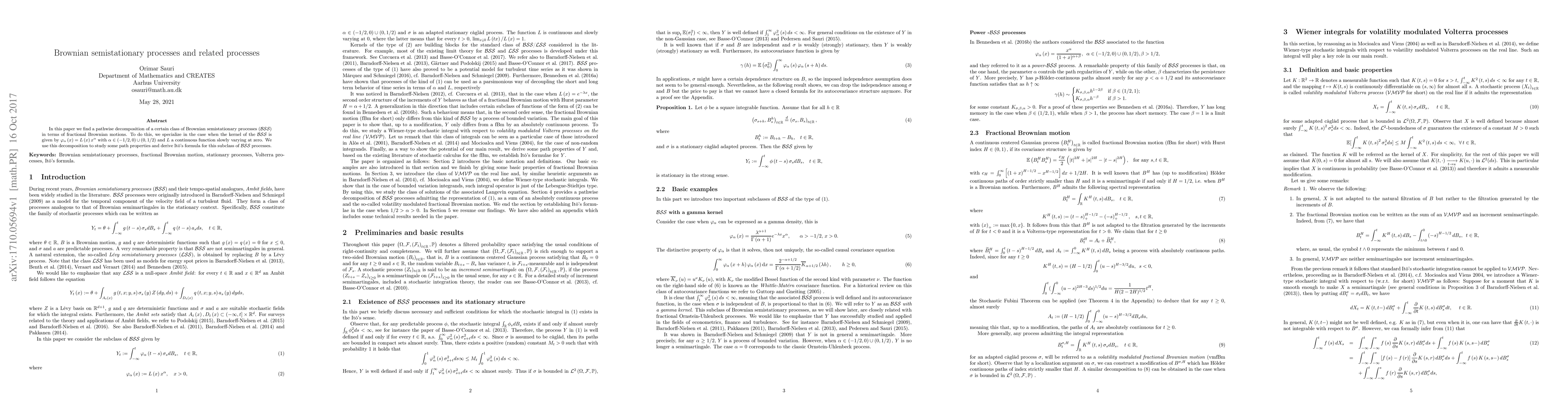 This paper decomposes a class of Brownian semistationary processes ($\mathcal{BSS}$) into fractional Brownian motions, focusing on kernels of the form $\varphi_{\alpha}\left(x\right)=L\left(x\right)x^{\alpha}$. It derives path properties and Itô's formula for this subclass.