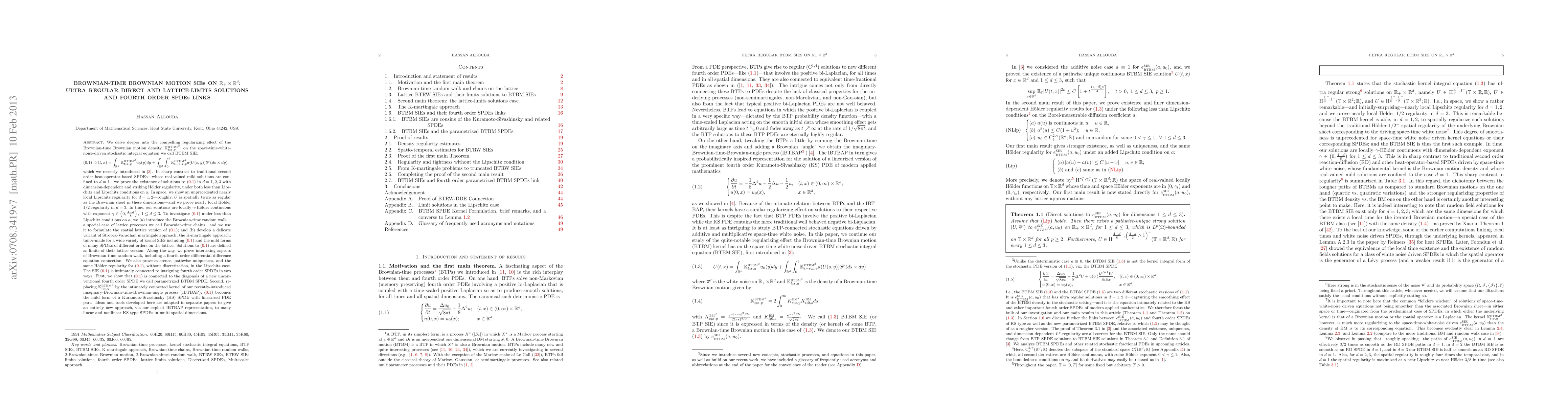 We delve deeper into the compelling regularizing effect of the Brownian-time Brownian motion density, $\KBtxy$, on the space-time-white-noise-driven stochastic integral equation we call BTBM SIE, which we recently introduced. In sharp contrast to second order heat-based SPDEs--whose real-valued mild solutions are confined to $d=1$--we prove the existence of solutions to the BTBM SIE in $d=1,2,3$ with dimension-dependent and striking Holder regularity, under both less than Lipschitz and Lipschitz conditions. In space, we show an unprecedented nearly local Lipschitz regularity for $d=1,2$--roughly, the SIE is spatially twice as regular as the Brownian sheet in these dimensions--and nearly local H\"older 1/2 regularity in d=3. In time, our solutions are locally H\"older continuous with exponent $\gamma\in(0,(4-d)/(8))$ for $1\le d\le3$. To investigate our SIE, we (a) introduce the Brownian-time random walk and we use it to formulate the spatial lattice version of the BTBM SIE; and (b) develop a delicate variant of Stroock-Varadhan martingale approach, the K-martingale approach, tailor-made for a wide variety of kernel SIEs including BTBM SIEs and the mild forms of many SPDEs of different orders on the lattice. Here, solutions types to our SIE are both direct and limits of their lattice version. The BTBM SIE is intimately connected to intriguing fourth order SPDEs in two ways. First, we show that it is connected to the diagonals of a new unconventional fourth order SPDE we call parametrized BTBM SPDE. Second, replacing $\KBtxy$ by the intimately connected kernel of our recently introduced imaginary-Brownian time-Brownian-angle process (IBTBAP), our SIE becomes the mild form of a Kuramoto-Sivashinsky SPDE with linear PDE part. Ideas developed here are adapted in separate papers to give a new approach, via our explicit IBTBAP representation, to many KS-type SPDEs in multi spatial dimensions.