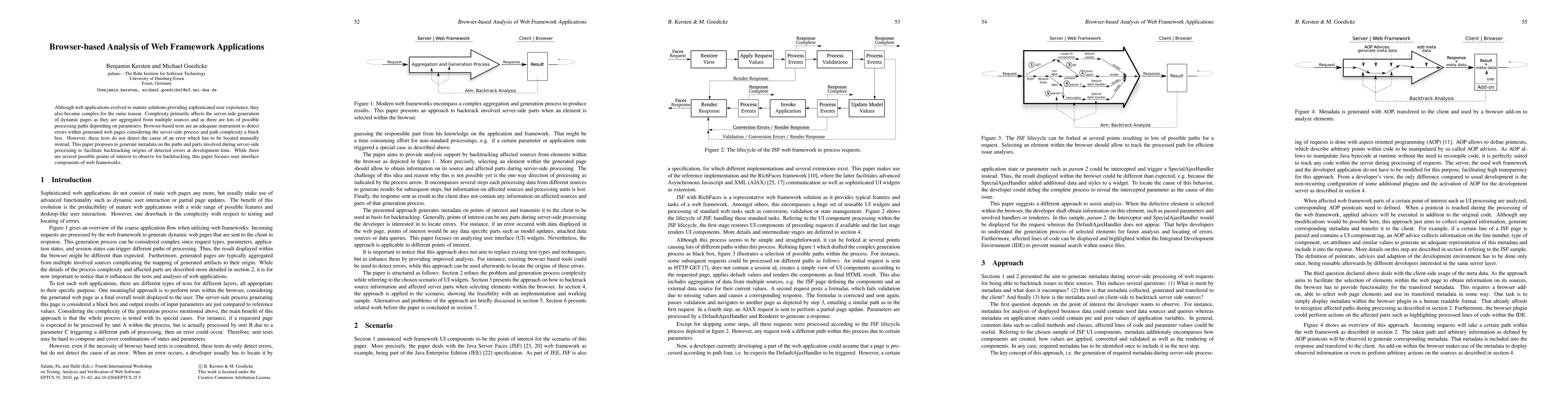 This paper explores browser-based tests for detecting errors in complex web applications, proposing the generation of metadata during server-side processing to help developers trace the origins of errors in user interface components. The aim is to enhance error detection and resolution efficiency.